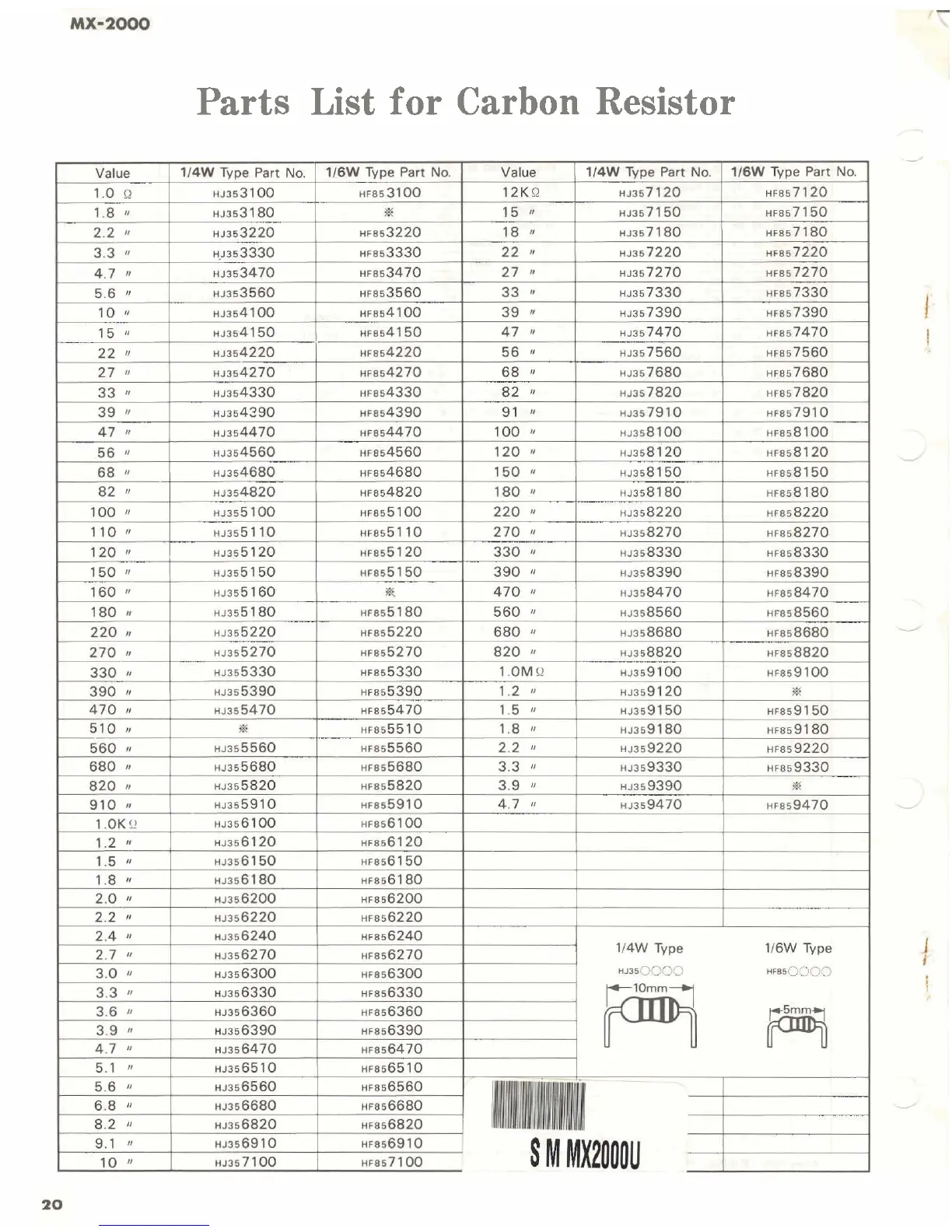 Yamaha MX-2000 - Parts List for Carbon Resistor