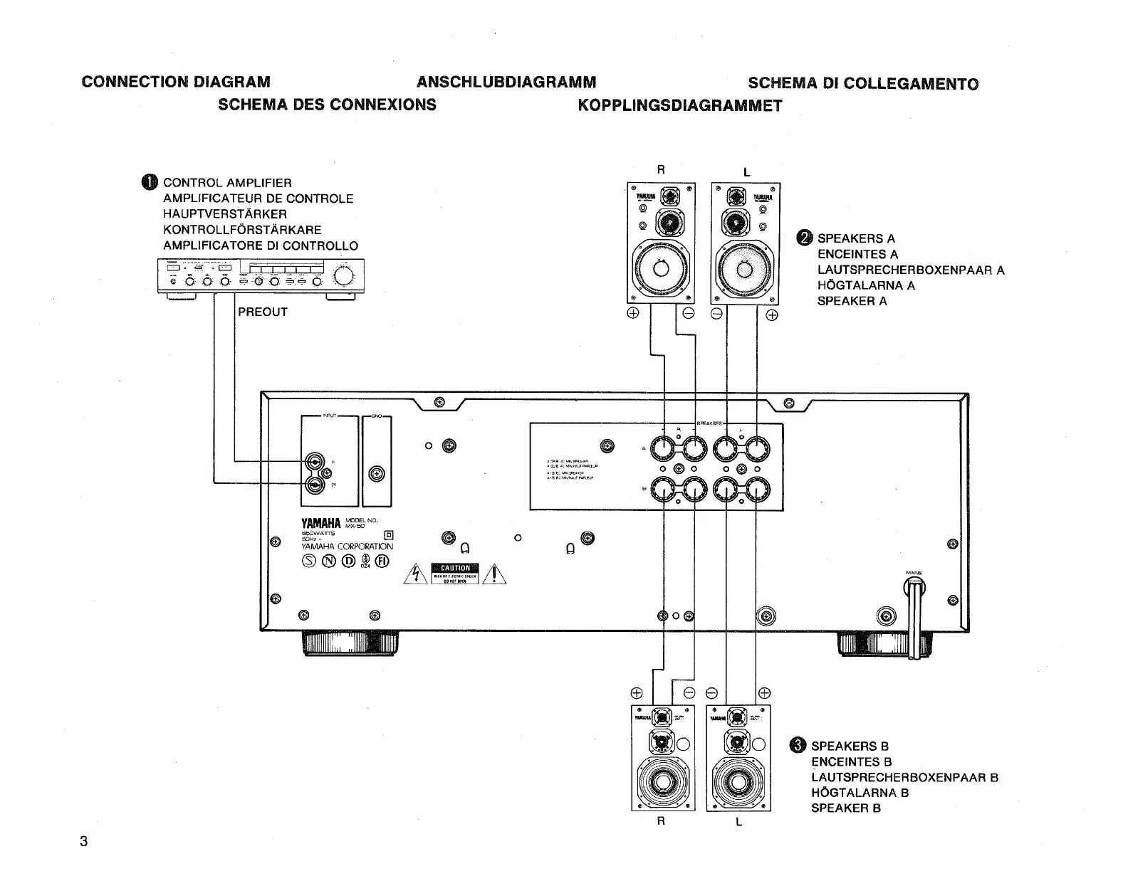 Yamaha MX-50 - Connection Diagram; Control Amplifier Connection; Speaker System A Connection; Speaker System B Connection