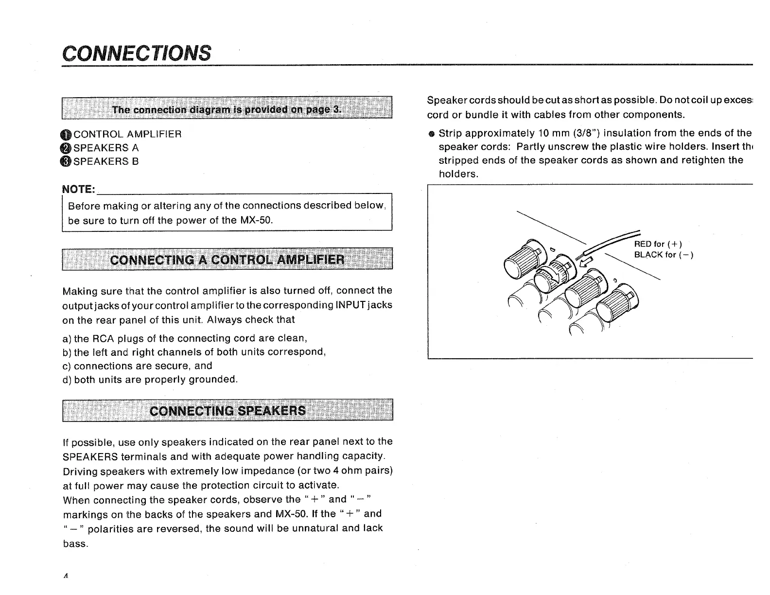 Yamaha MX-50 - Connecting the Amplifier; Connecting a Control Amplifier; Connecting Speaker Systems