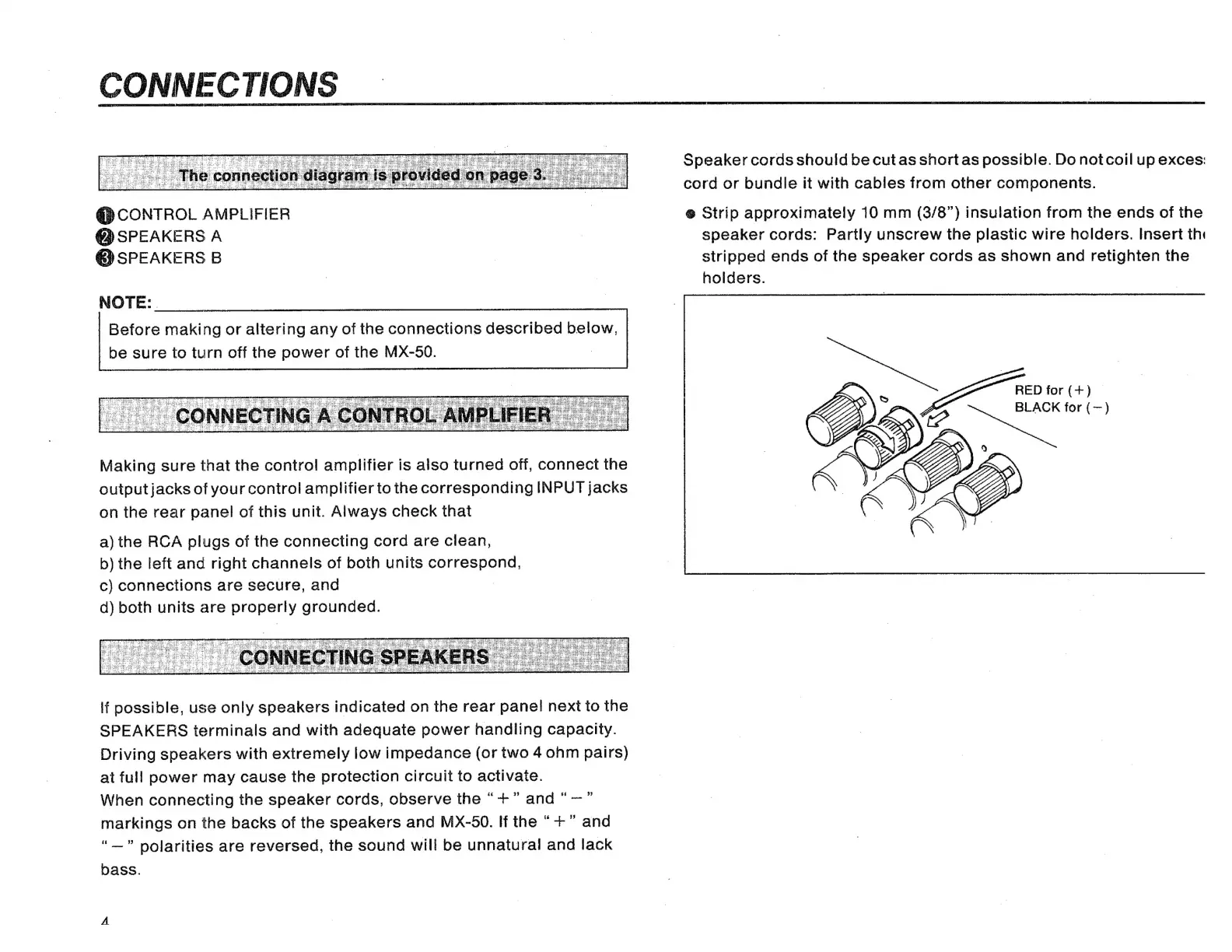 Yamaha MX-50 - Connecting the Amplifier; Connecting a Control Amplifier; Connecting Speaker Systems