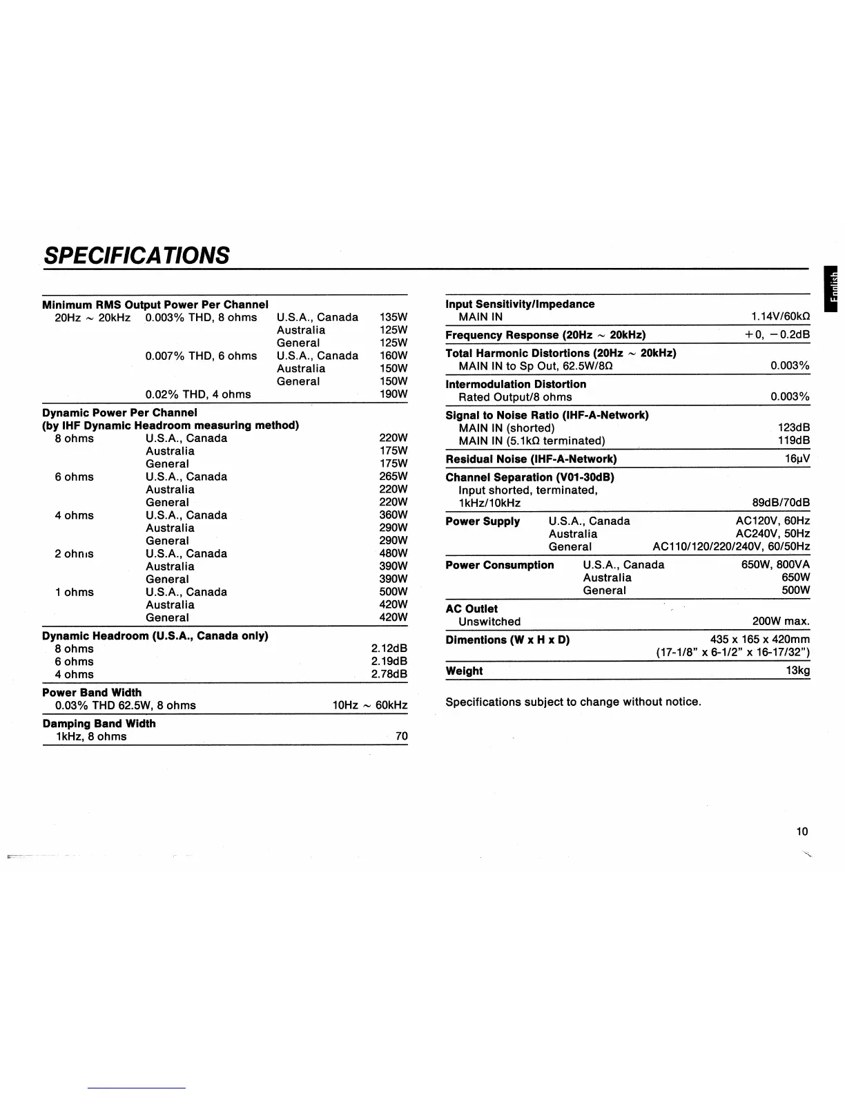 Yamaha MX-600 /U - Specifications