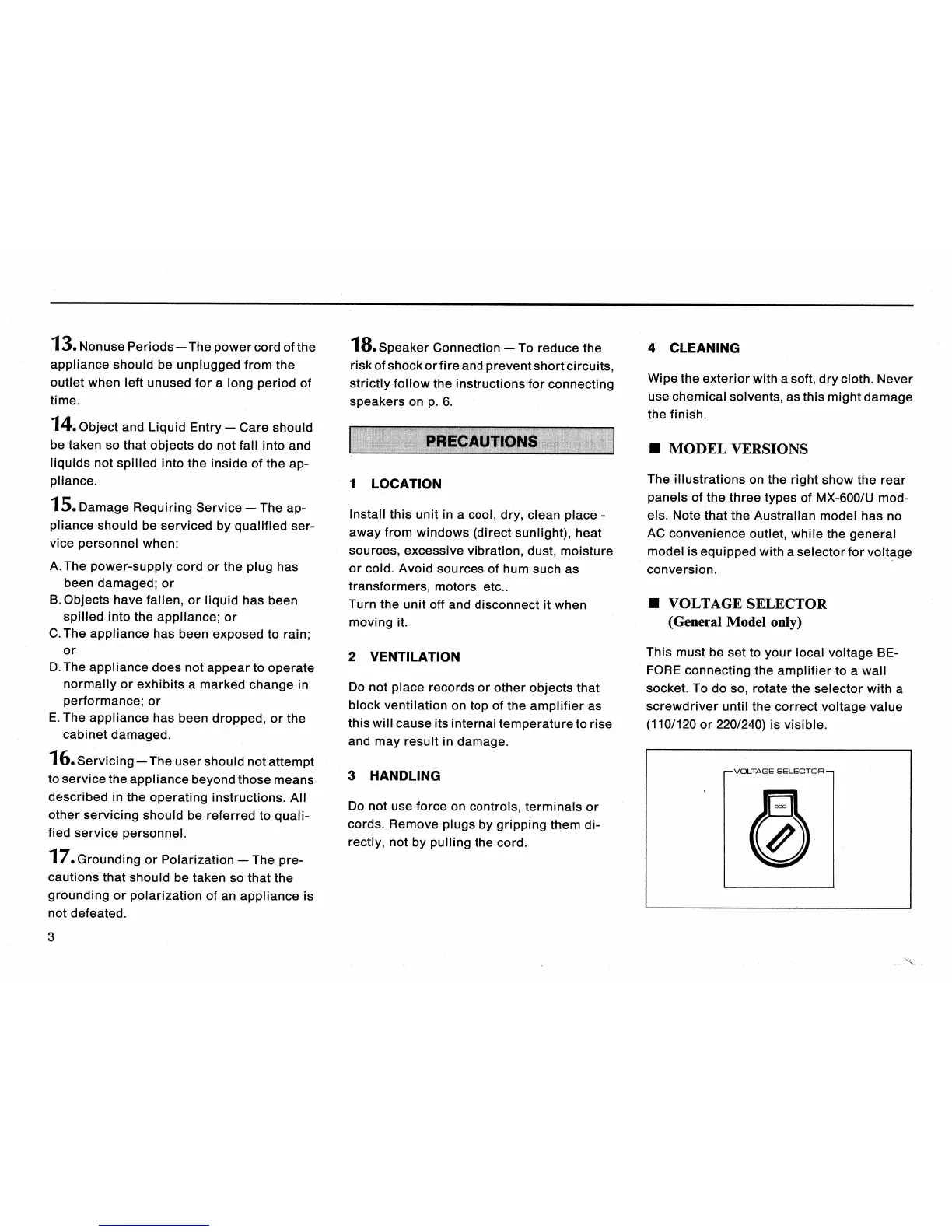 Yamaha MX-600 /U - Precautions; Voltage Selector