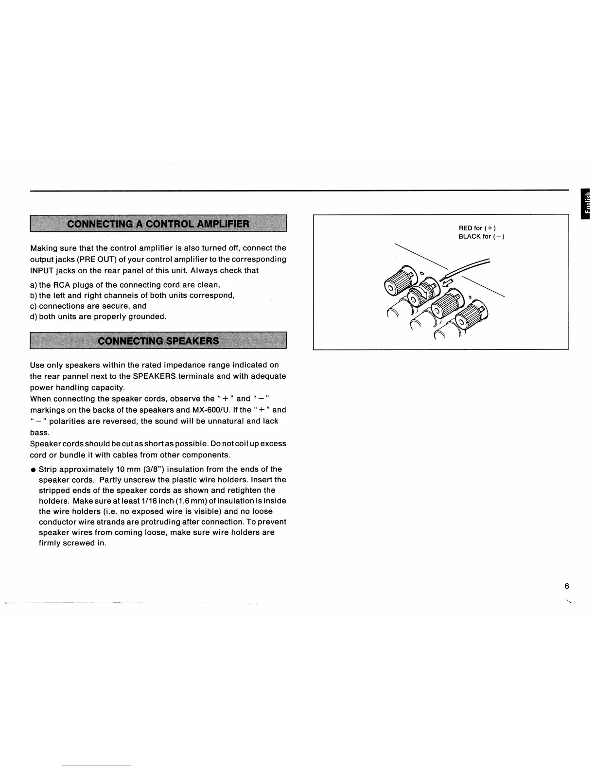 Yamaha MX-600 /U - Connecting a Control Amplifier; Connecting Speakers