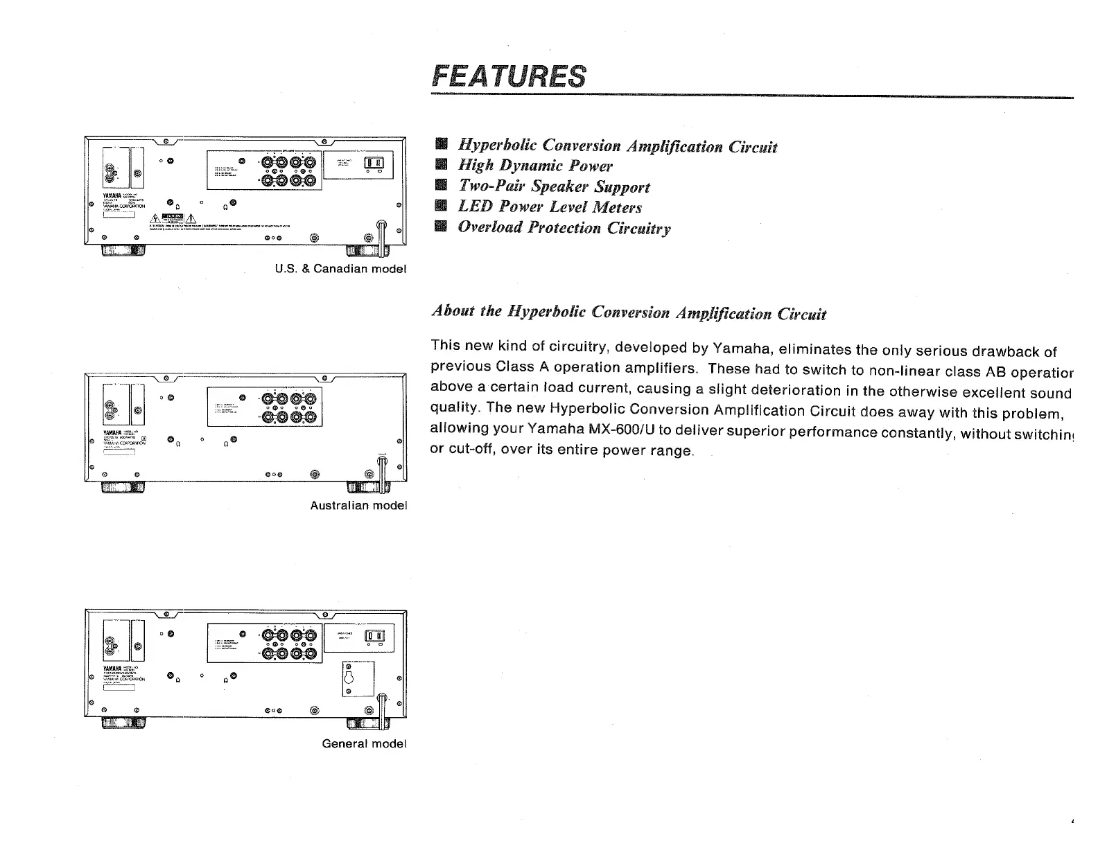 Yamaha MX-600 - Product Features; Key Technical Features; Hyperbolic Conversion Amplification