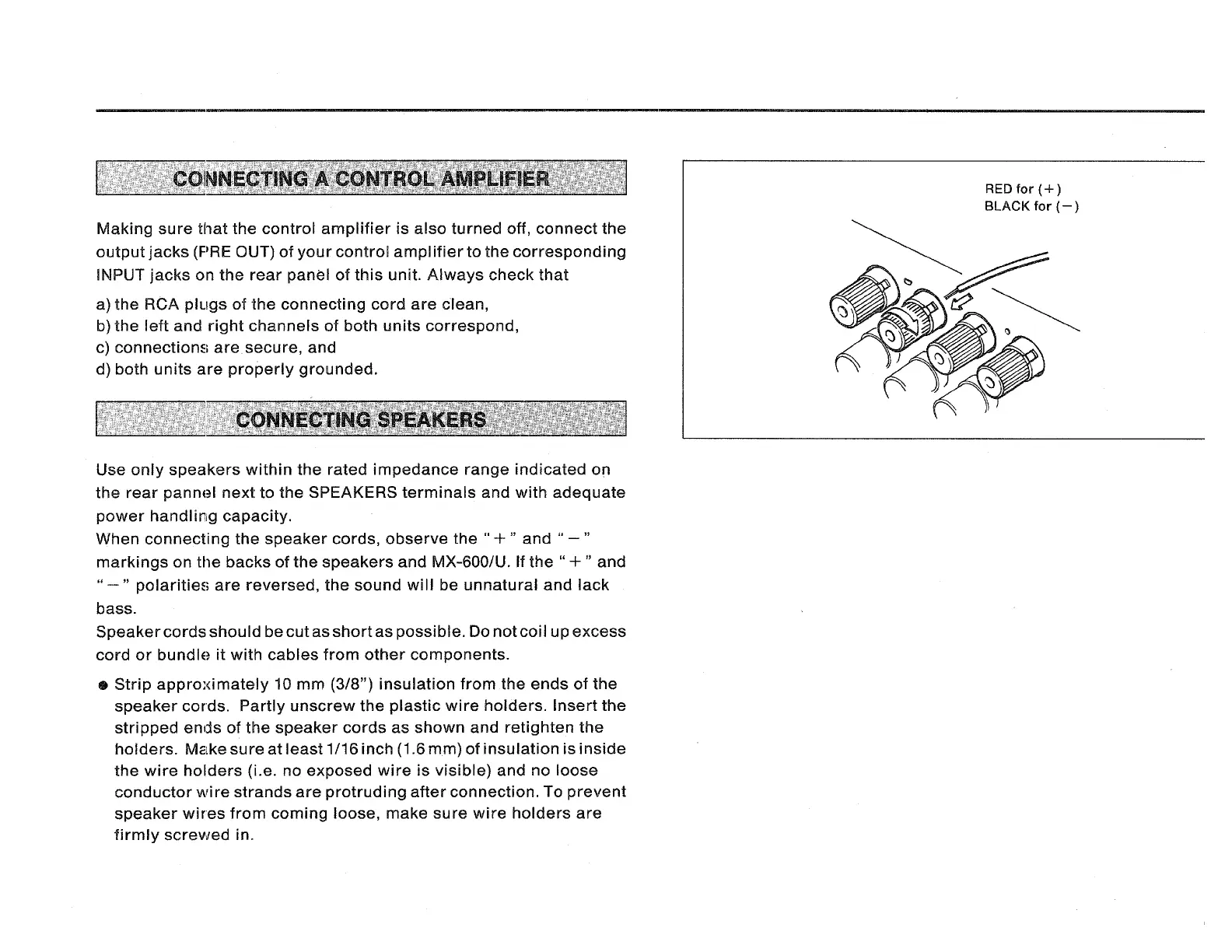 Yamaha MX-600 - Connecting a Control Amplifier; Connecting Speakers