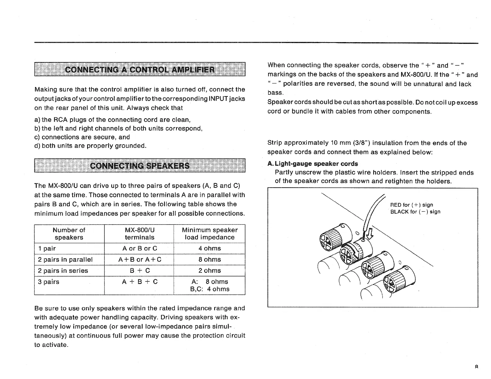 Yamaha MX-800 - Connecting a Control Amplifier; Connecting Speakers