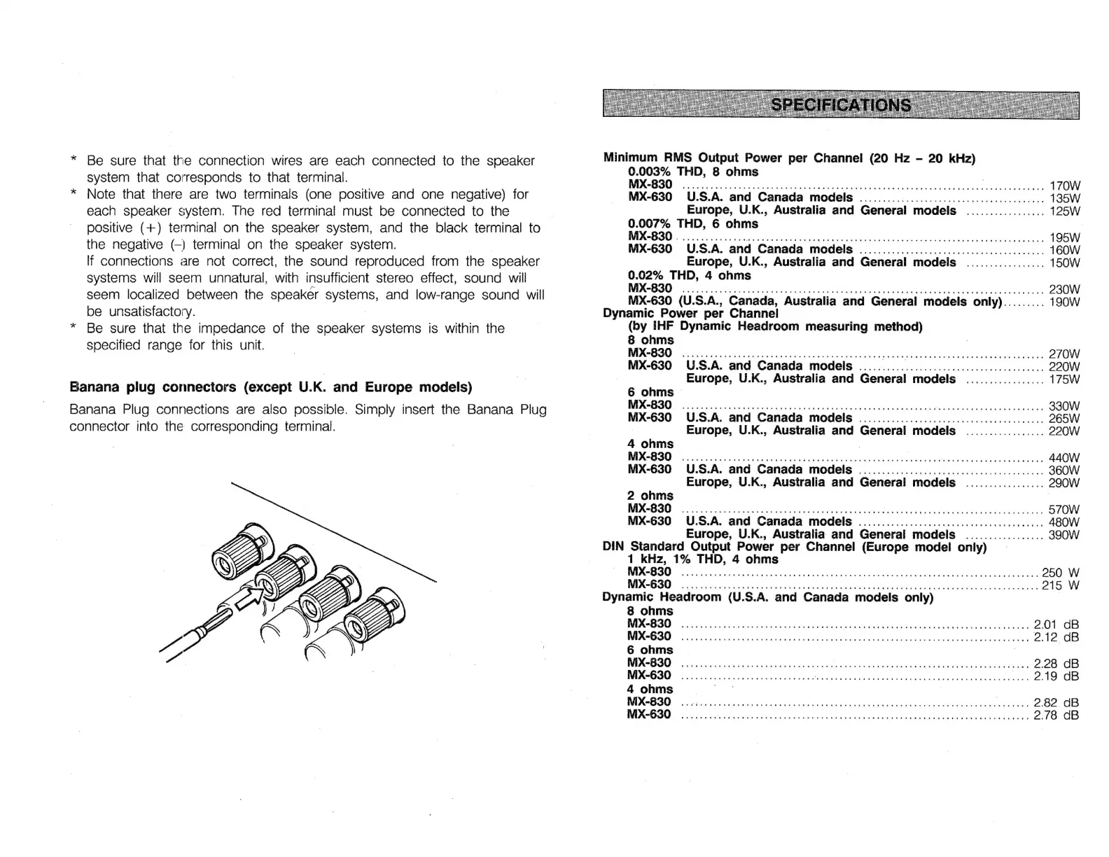Yamaha MX-830 - Model-Specific Wiring; U.C & A Model Wiring