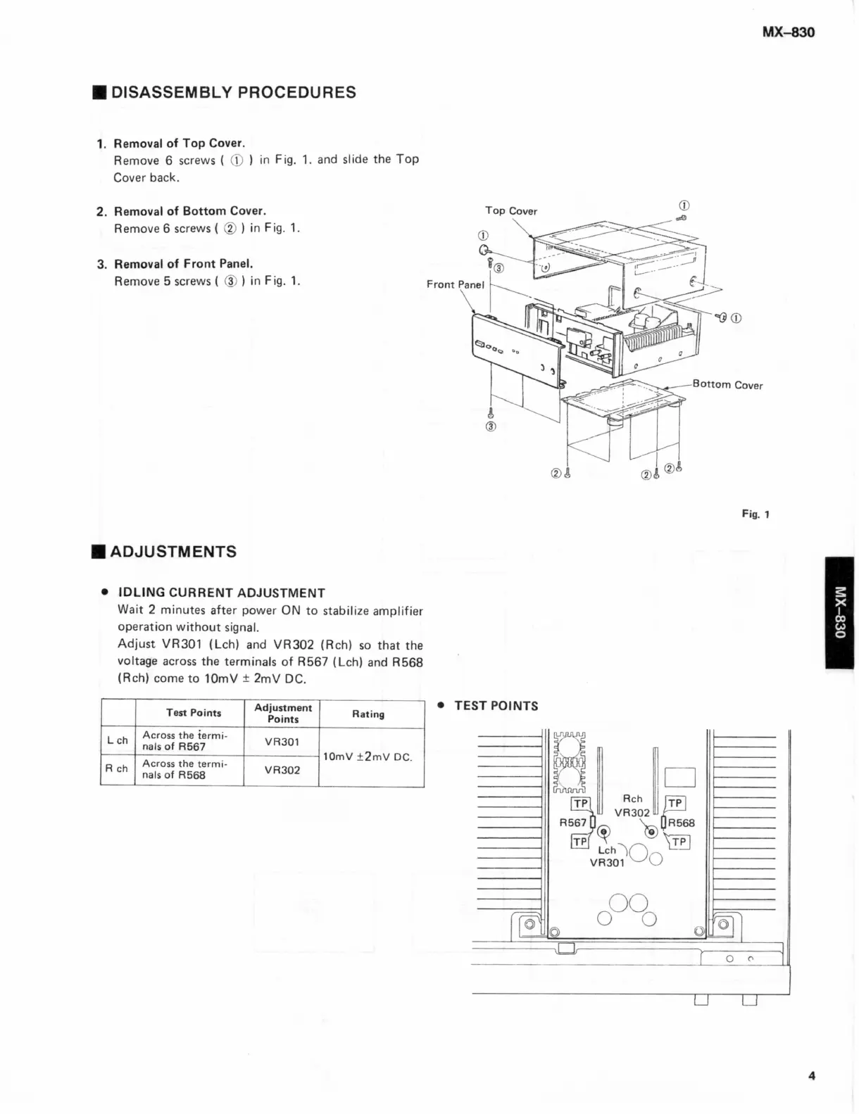 Yamaha MX-830 - Disassembly Procedures; Component Removal Steps; Adjustments; Idling Current Adjustment
