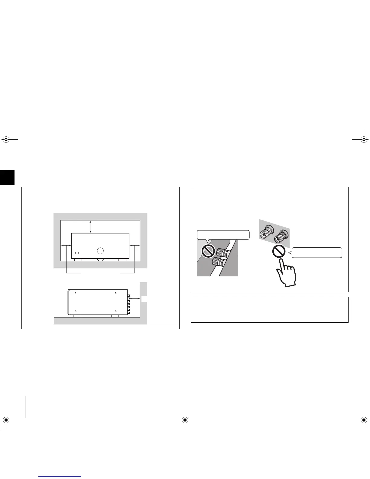 Since the unit adopts bare metallic speaker terminals, make sure keeping enough