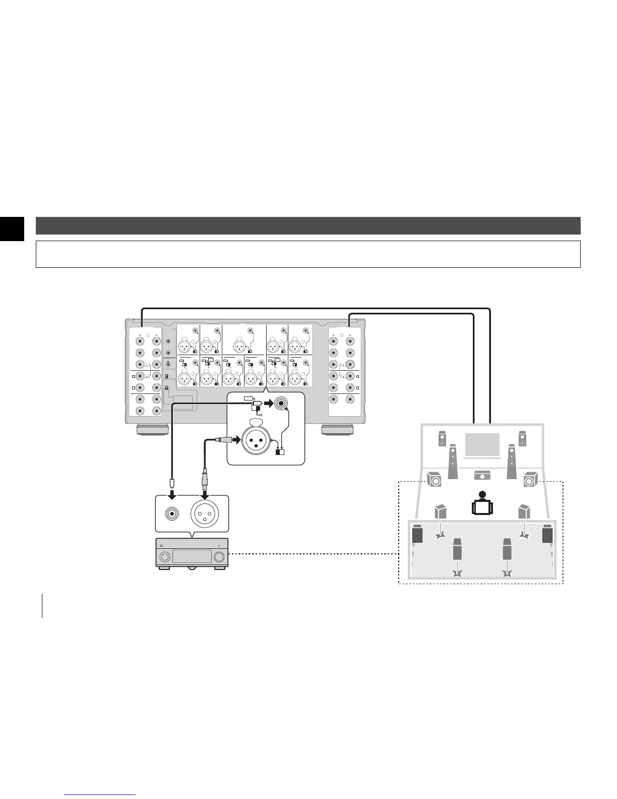 To connect a pre-amplifier, use an XLR balanced cable (for balanced connection) or an RCA unbalanced cable (for unbalanced connection) for each channel depending on the output jacks available on