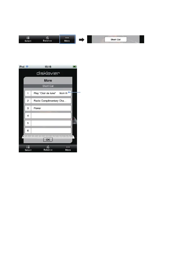 Tap on [More] in the toolbar, then on [Short Cut] in the More screen that appears.