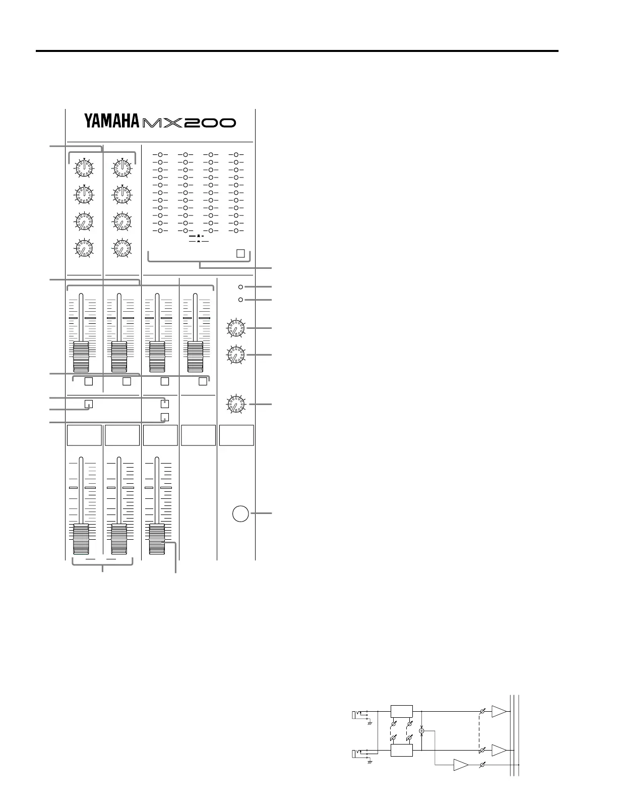 (2). Après l’ajustement au fader, le signal est envoyé de la sor-