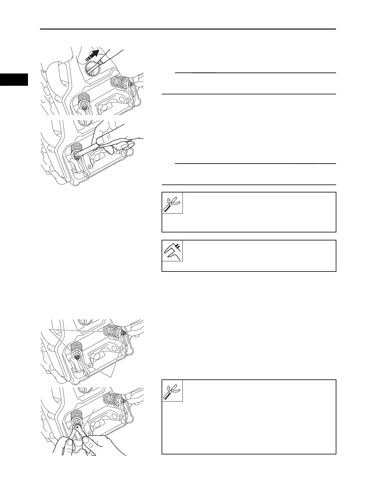 b. Using the tappet adjusting tool “2” turn the adjuster