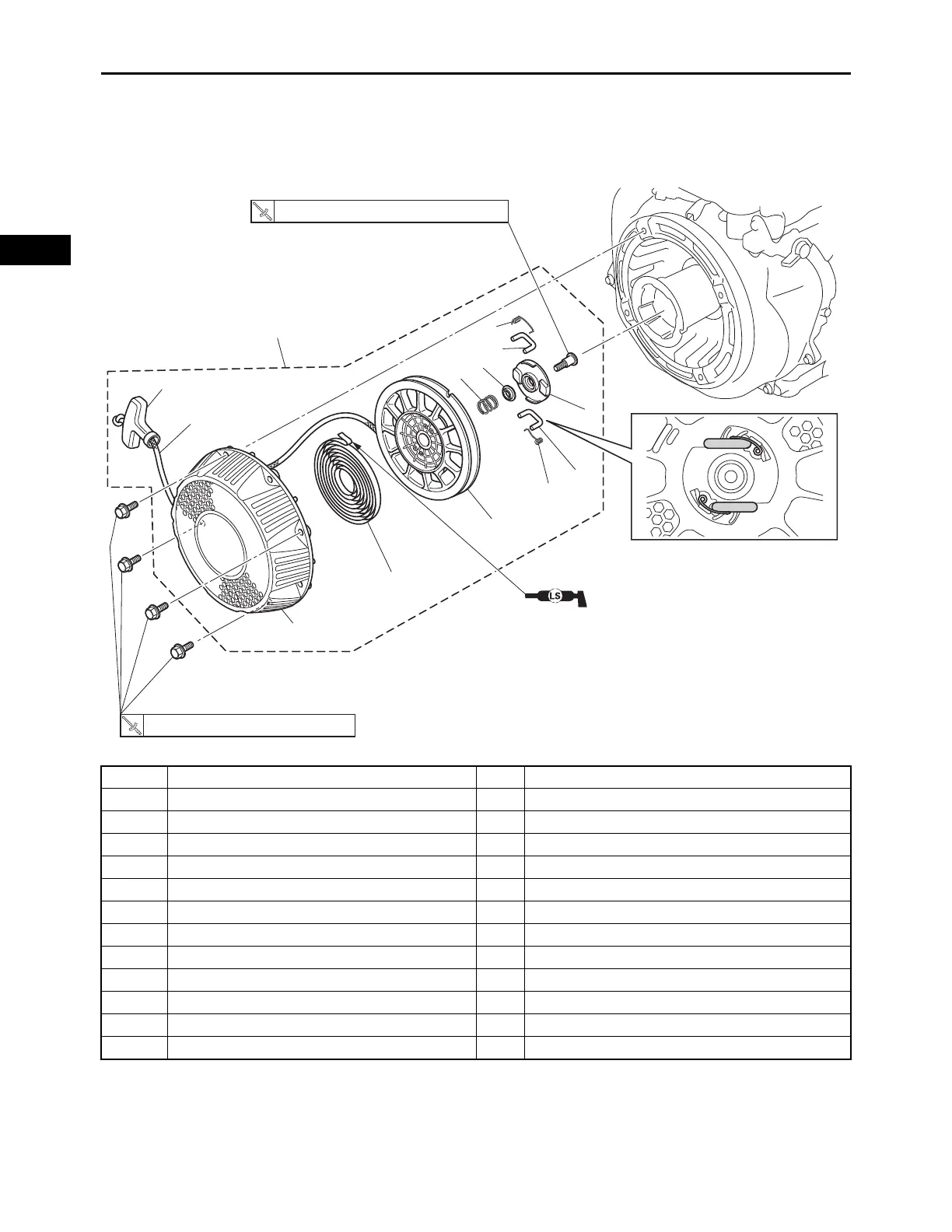 Removing the recoil starter Remove the parts in the order listed.