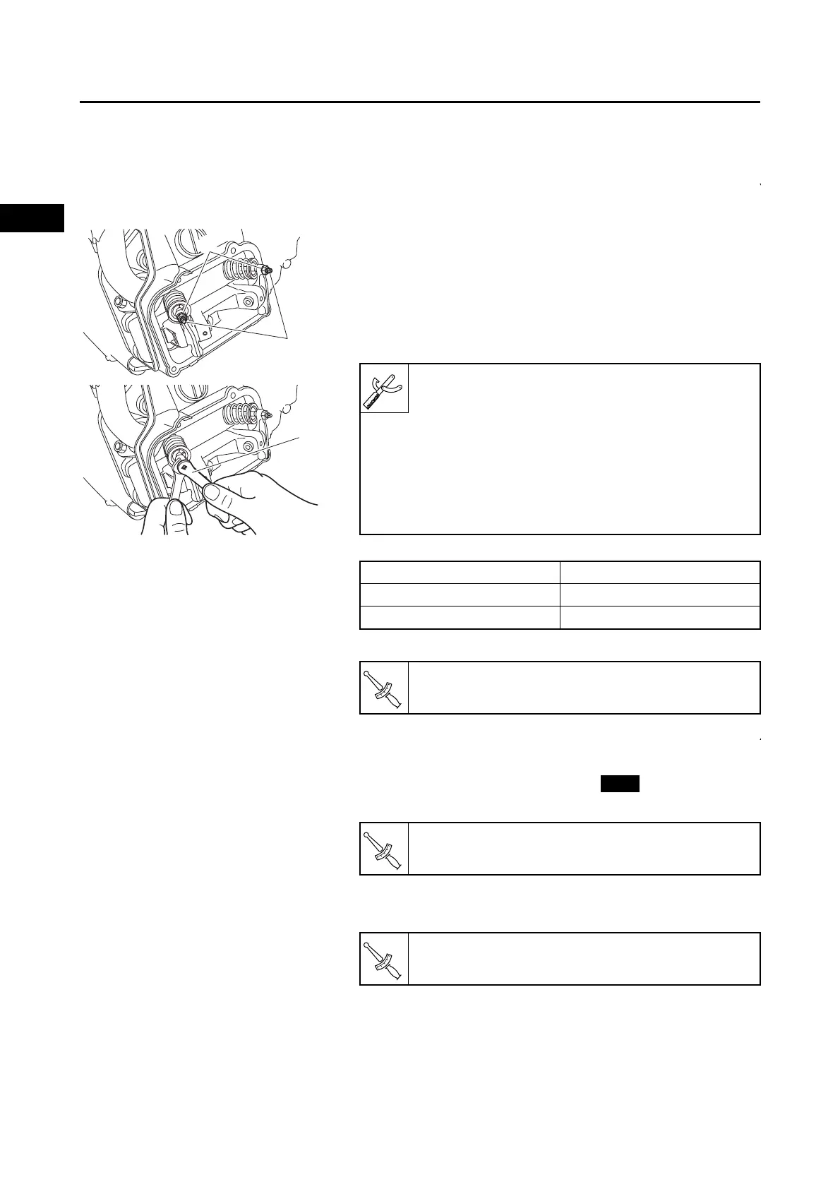 b. Using the tappet adjusting tool “2” turn the adjuster