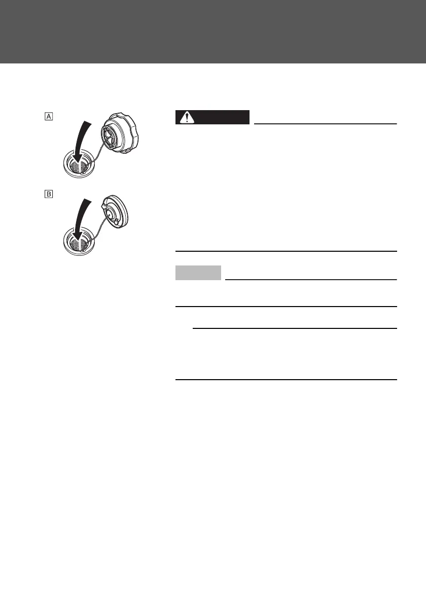 • After filling the tank with fuel, make sure the fuel