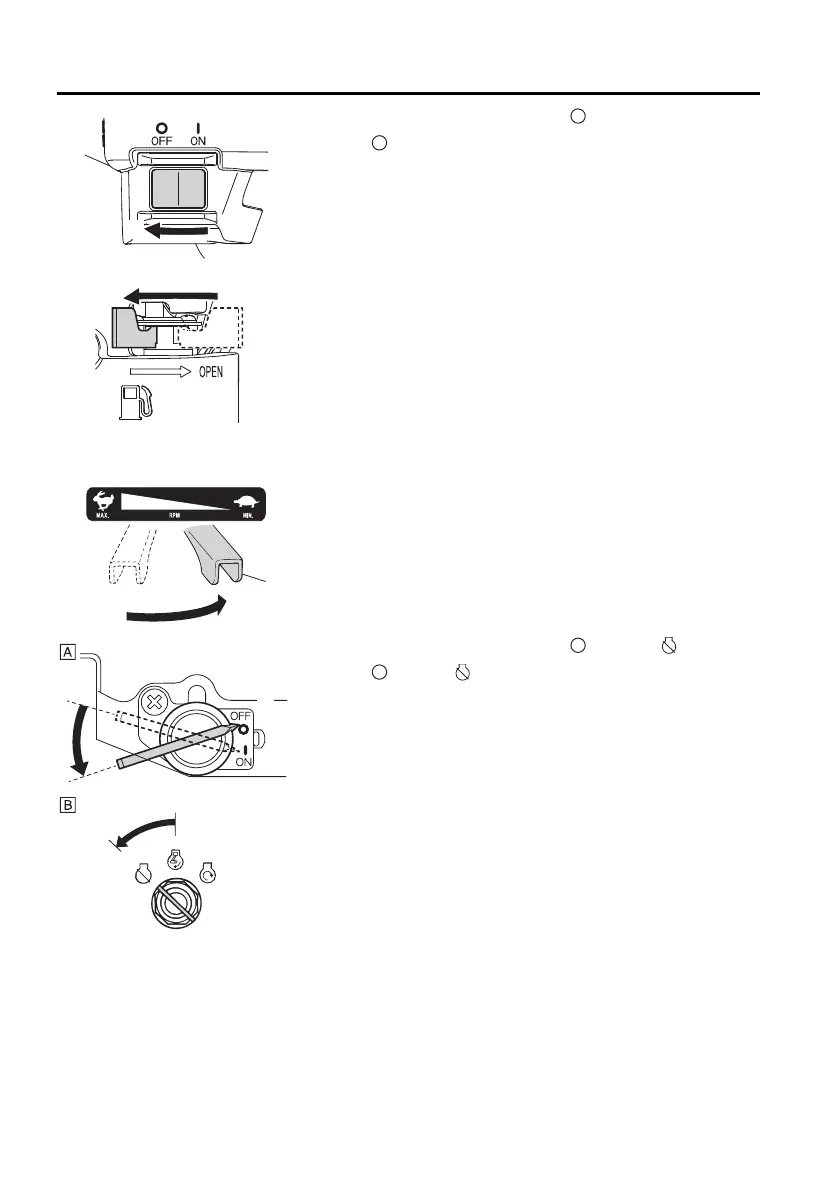 2. Turn the engine switch to “ ” (OFF)/“ ” (STOP).