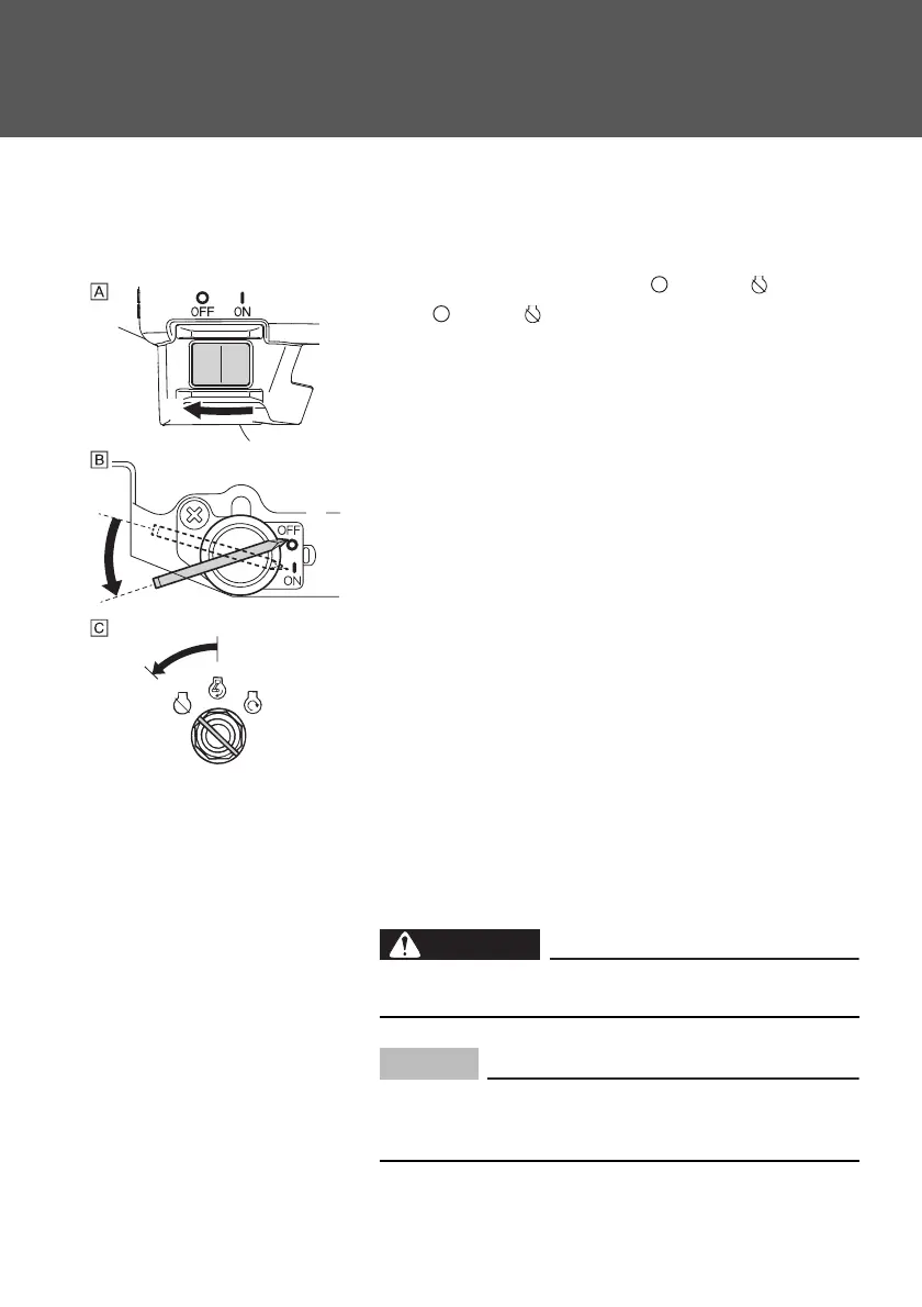 1. Turn the engine switch to “ ” (OFF)/“ ” (STOP).
