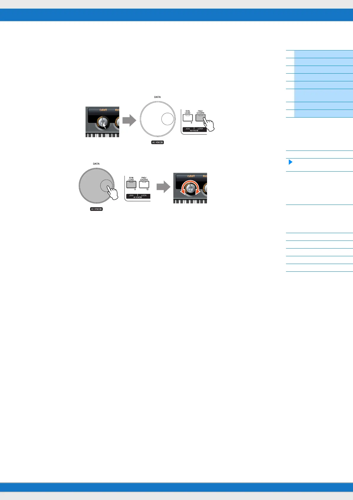 to the desired parameter then turn the [LOCK] button on, the AI KNOB will control the “locked” parameter regardless of