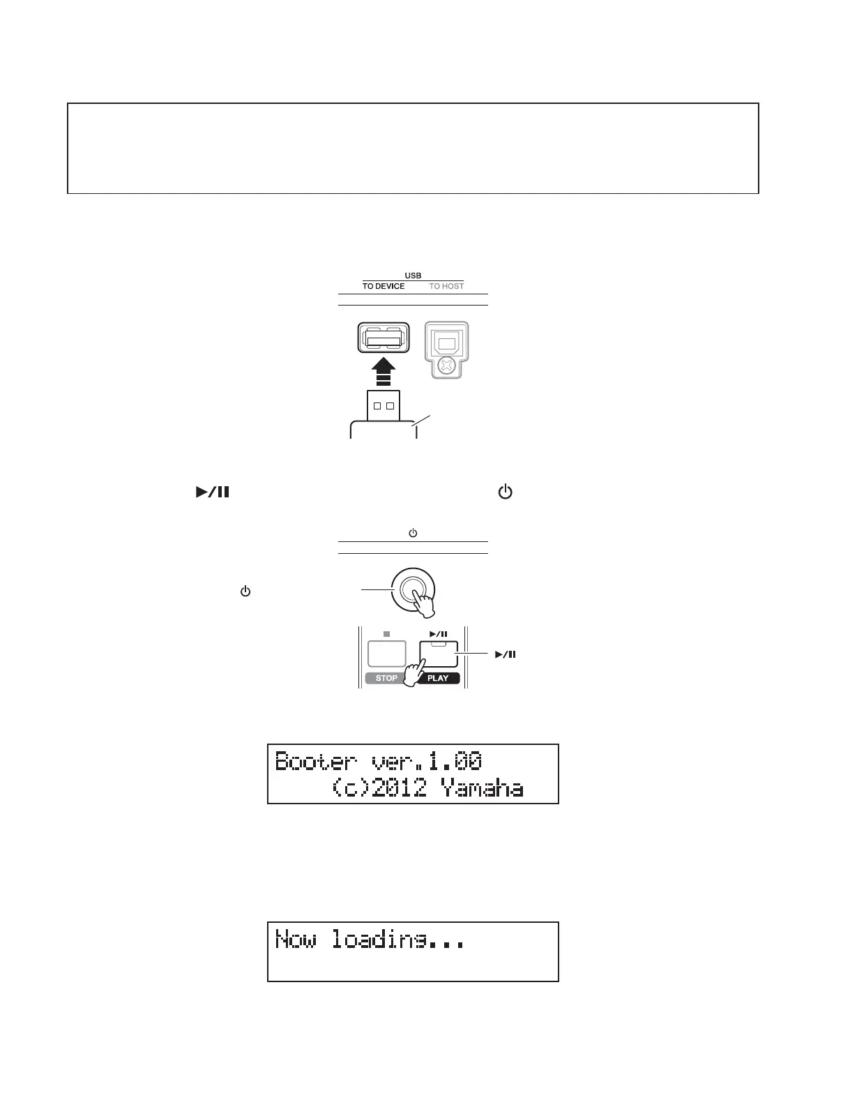 2. While pressing [ ] (Play/Pause) button, turn on the [ ] (Standby/On) switch.