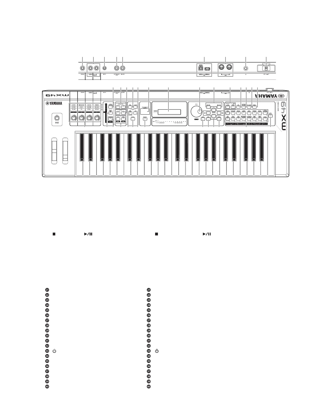 The illustration is of the MX49; however, the controls and terminals of the MX61 are the same.