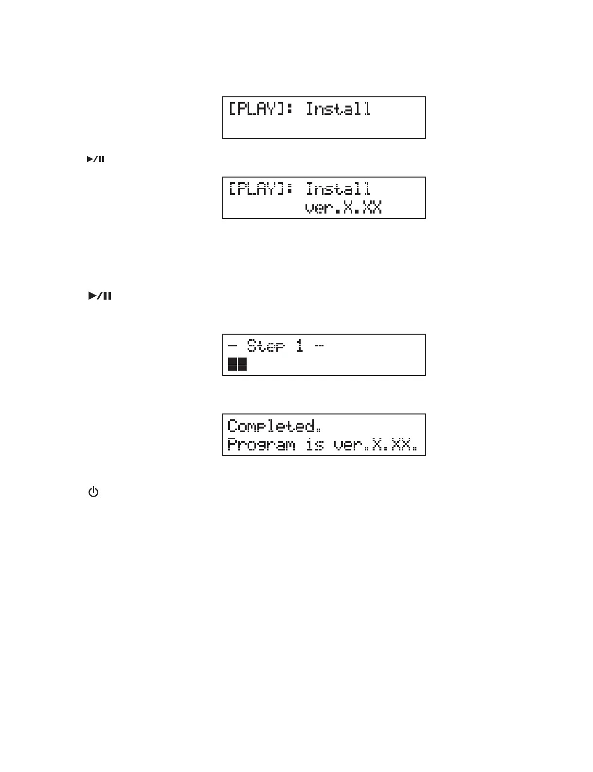 5.[ ](プレイ/ポーズ)ボタンを押して、インストールを開始します。