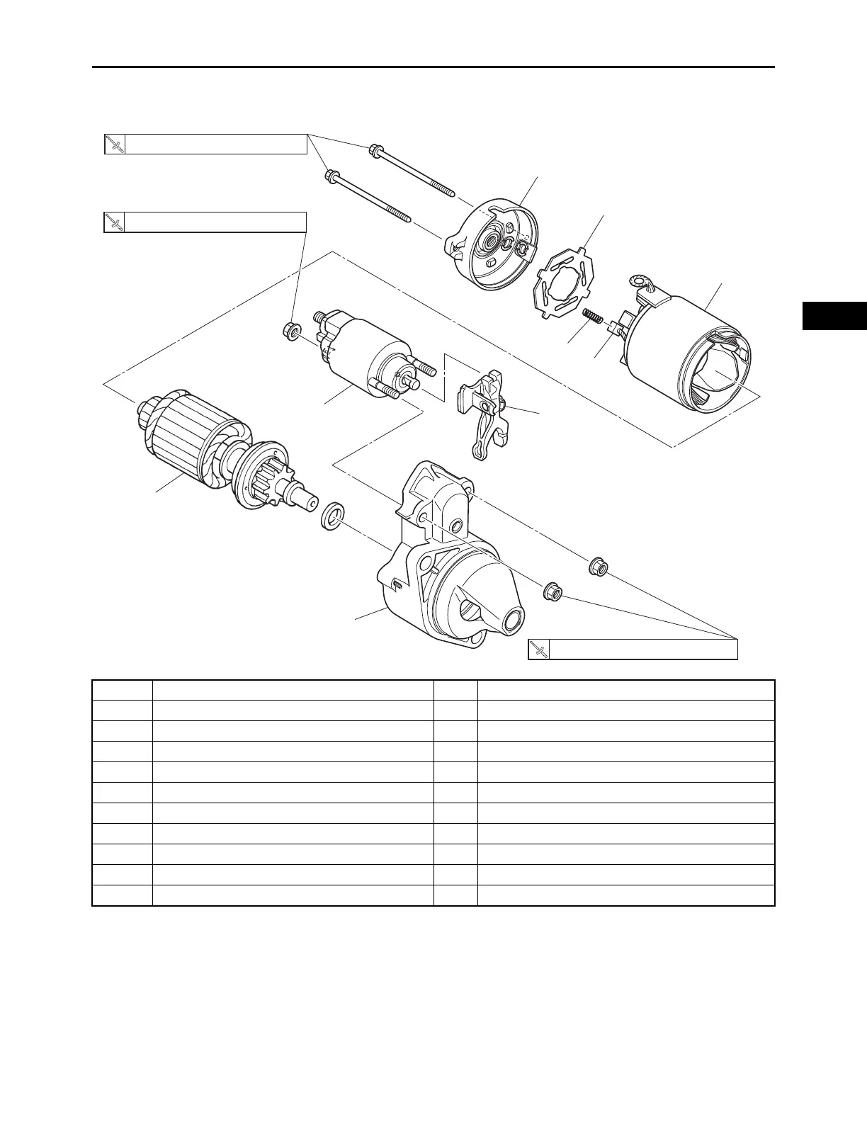 Disassembling the starter motor Disassemble the parts in the order listed.
