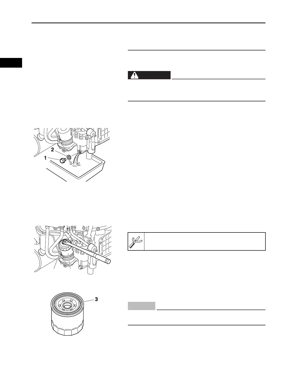a. Remove the oil filter “1” with an oil filter wrench “2”.