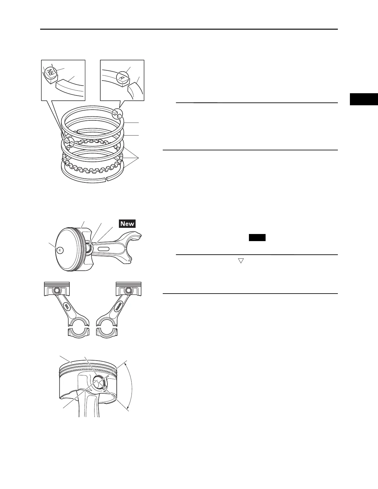 • Install the piston pin clips so that the clip ends are 45