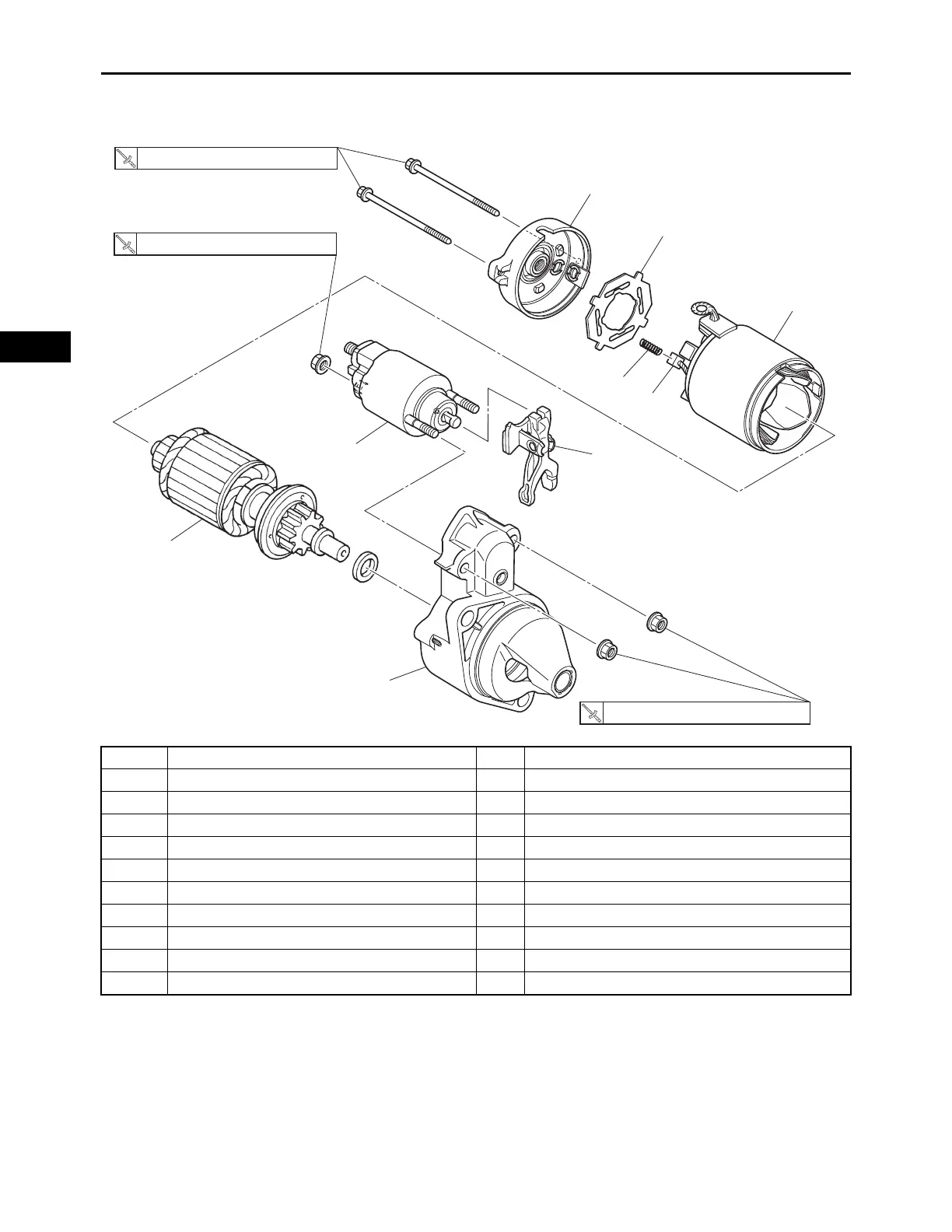Disassembling the starter motor Disassemble the parts in the order listed.
