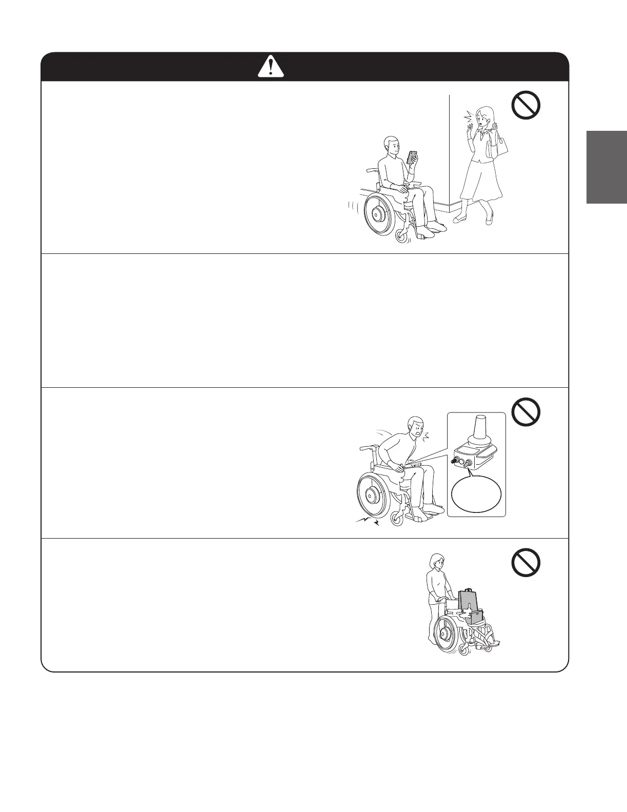 ● Donotoperatethewheelchairnearadevicethatproducesstrongradiowaves.Ifthewheel-