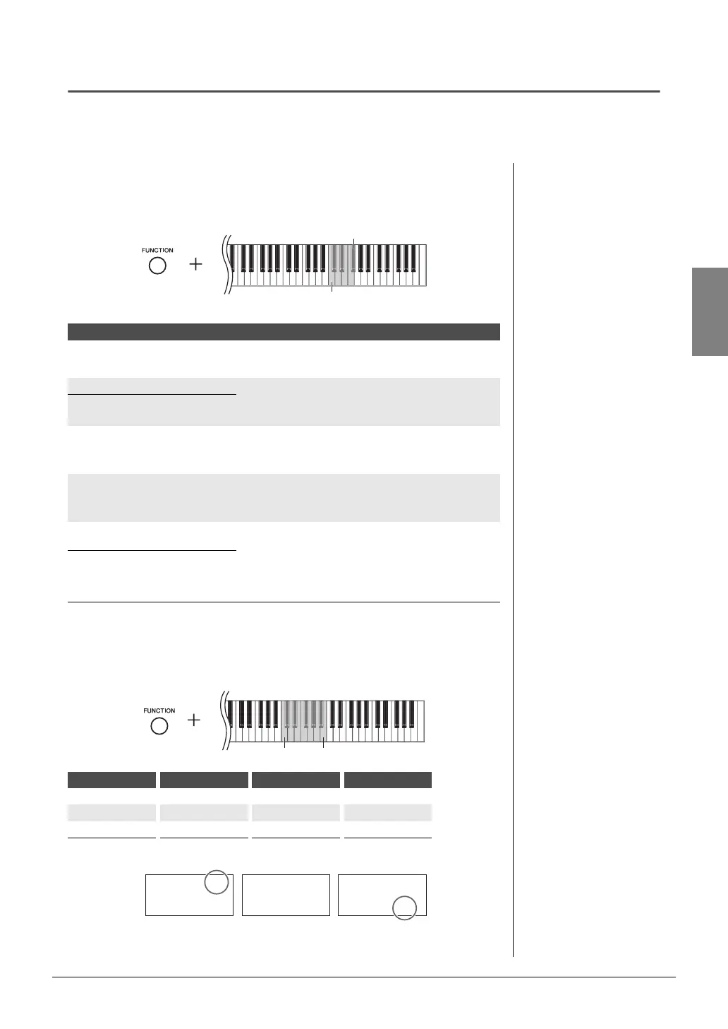 While holding down [FUNCTION], press one of the C4–B4 keys. Holding down both