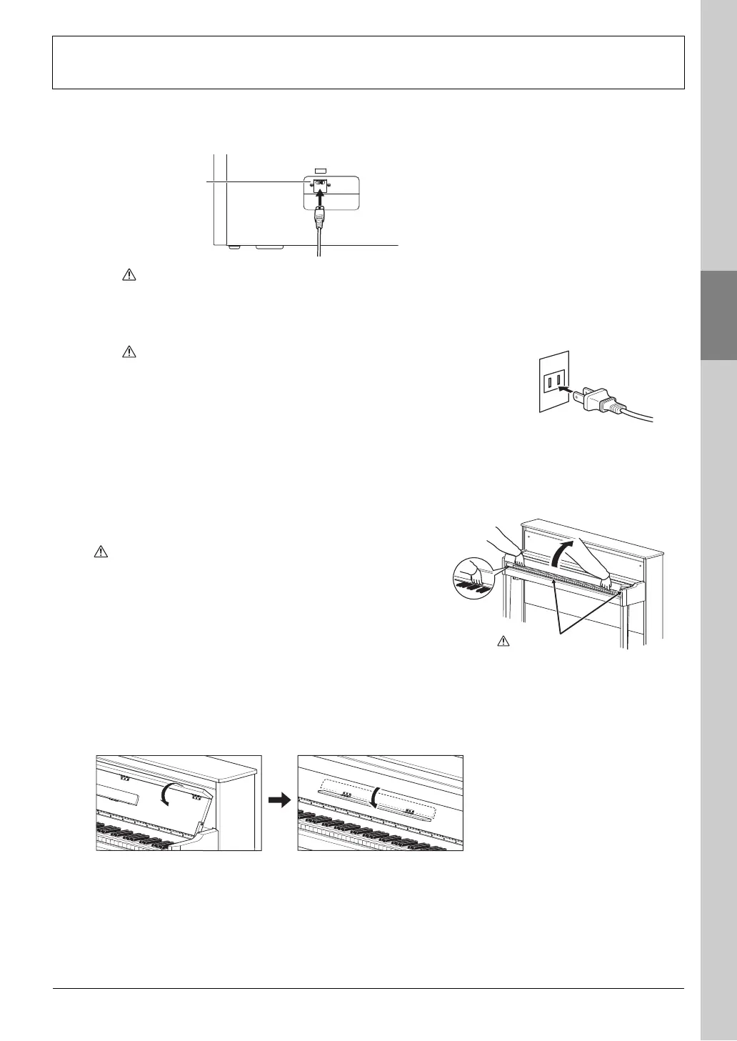• Hold the fallboard with both hands when opening or closing it. Do not