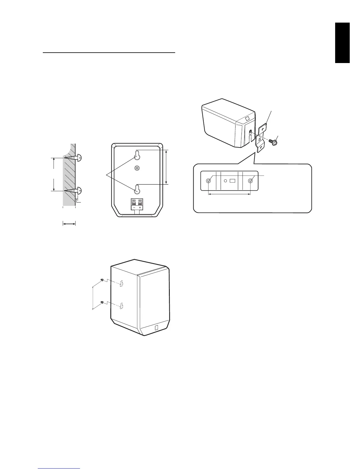 • Do not affix the speakers to a wall using nails,