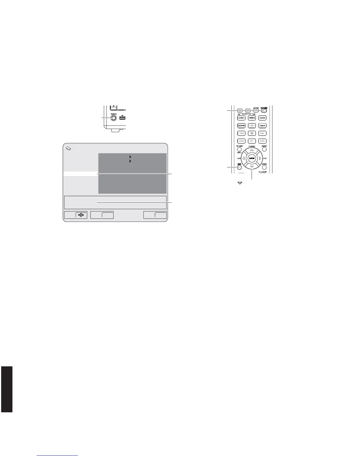 7. Move the cursor to [Options] by pressing the “DOWN” key on the remote control repeatedly and press the “ON