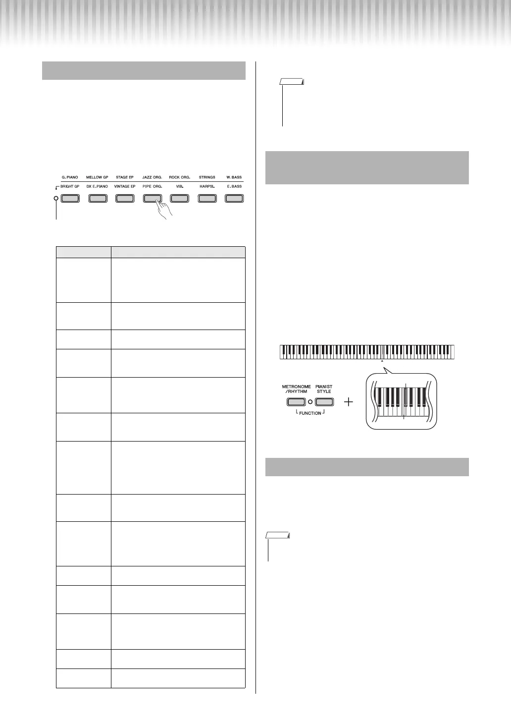 • Two Voices of the same button cannot be layered (for example, STRINGS and
