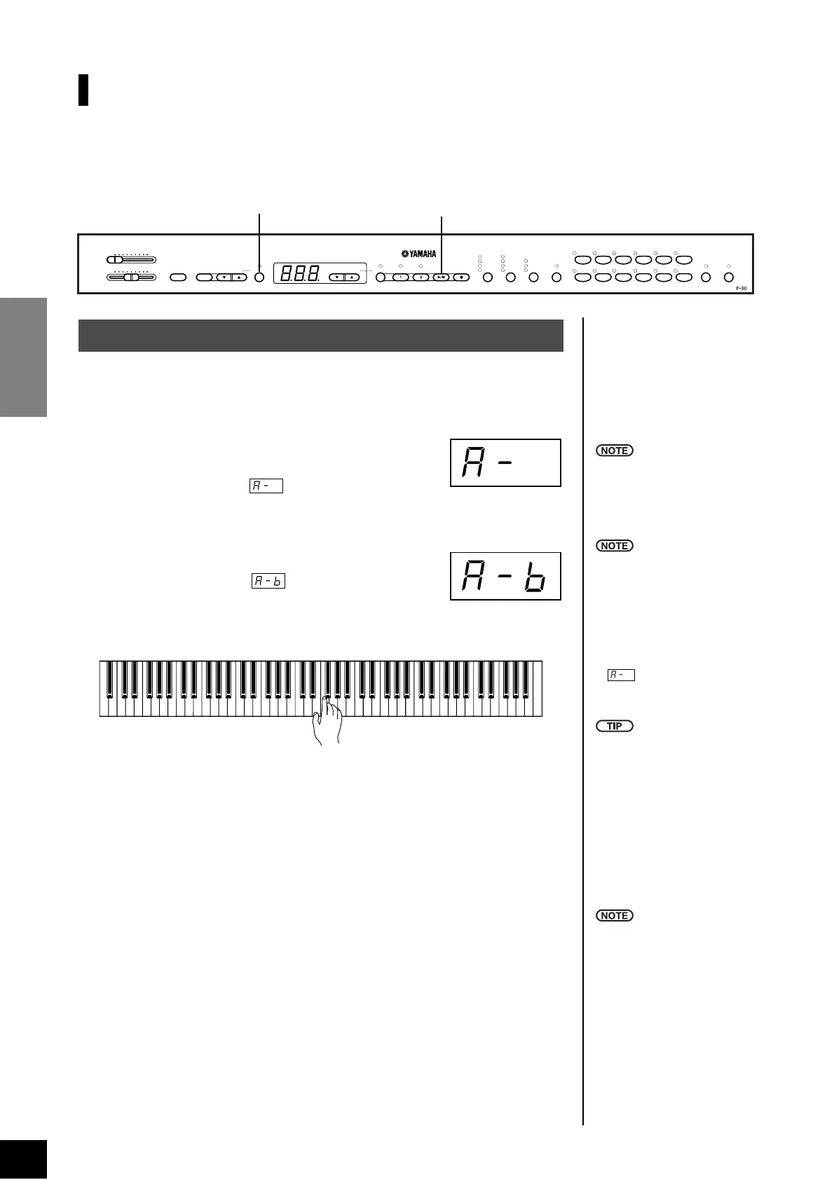 specified A and B points. A-B repeat playback will resume if you press the SONG