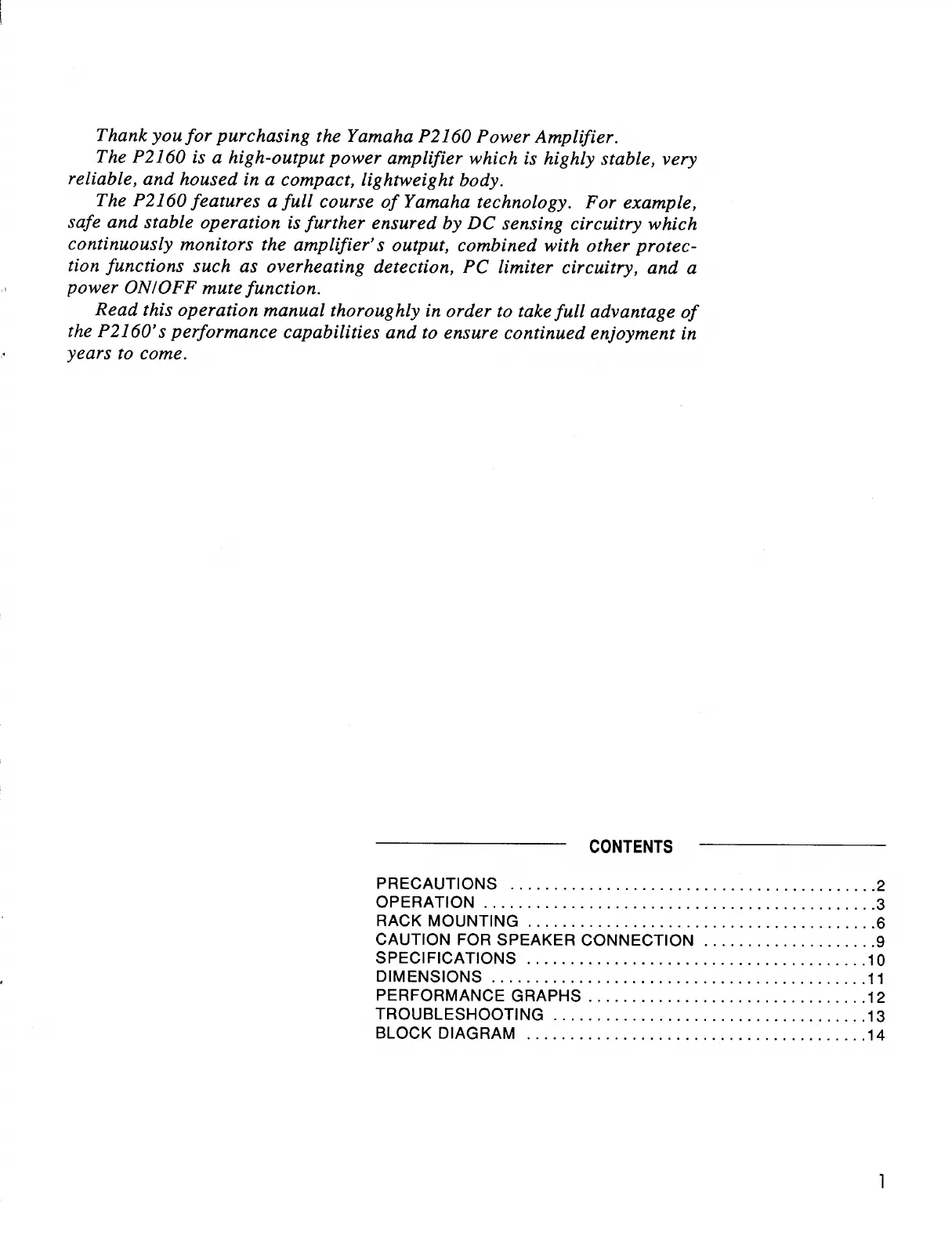 Yamaha P2160 - Contents