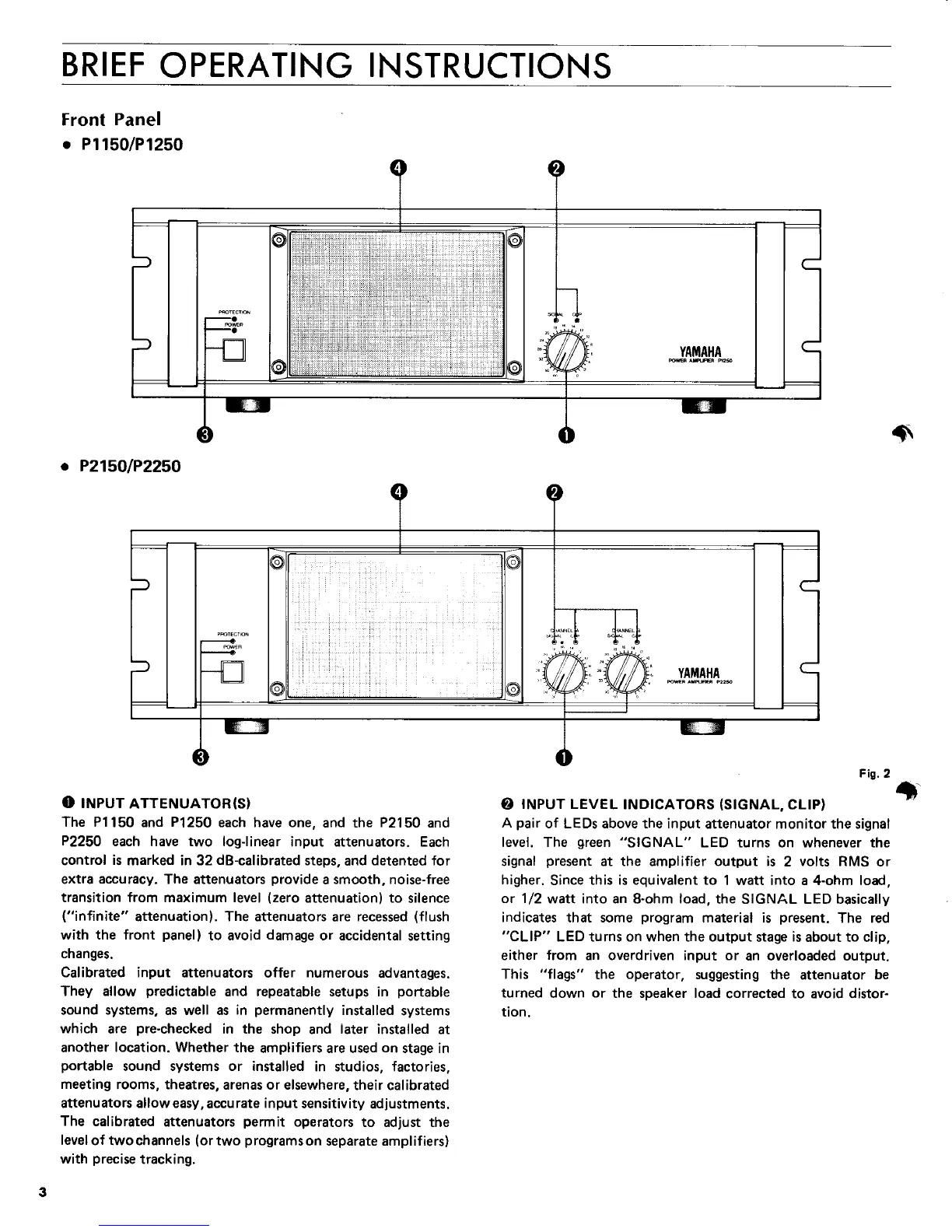Yamaha P2250 - Brief Operating Instructions; Front Panel Controls; Input Level Controls and Indicators