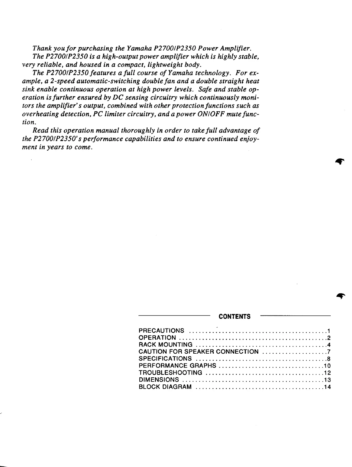 Yamaha P2350 - Contents