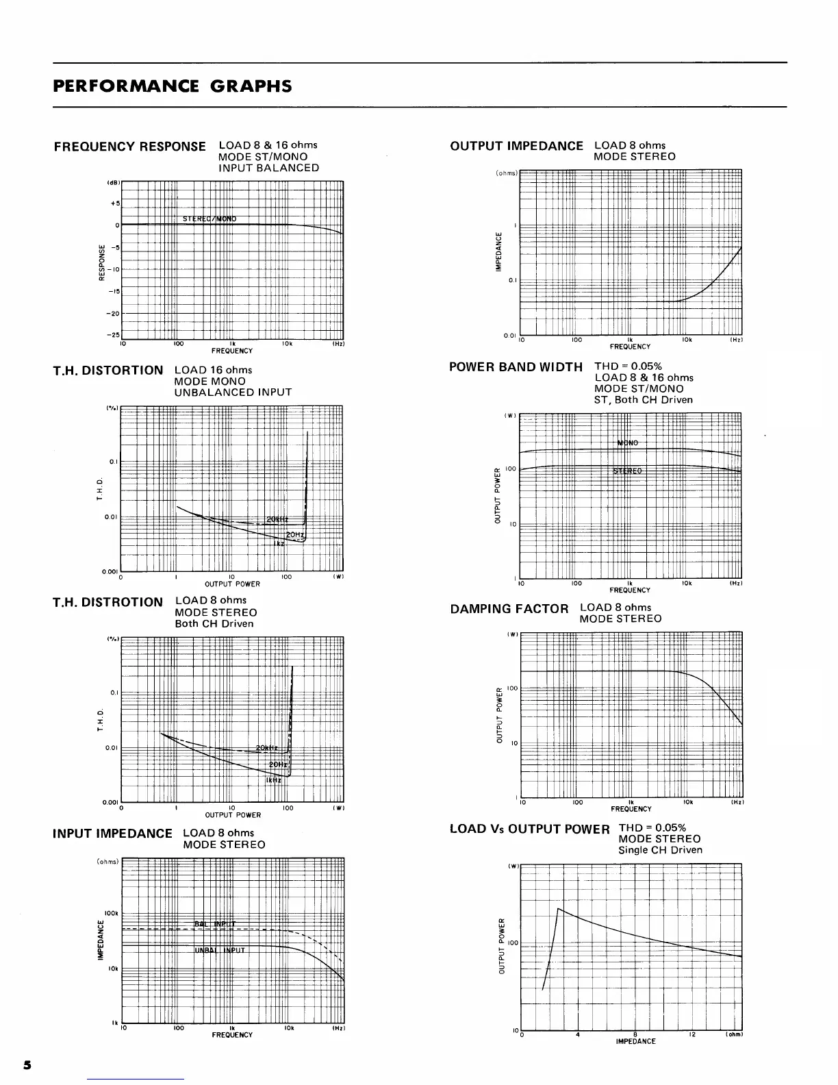 Yamaha PC1002 - Performance Graphs; Frequency Response; T.H. Distortion; Output Impedance
