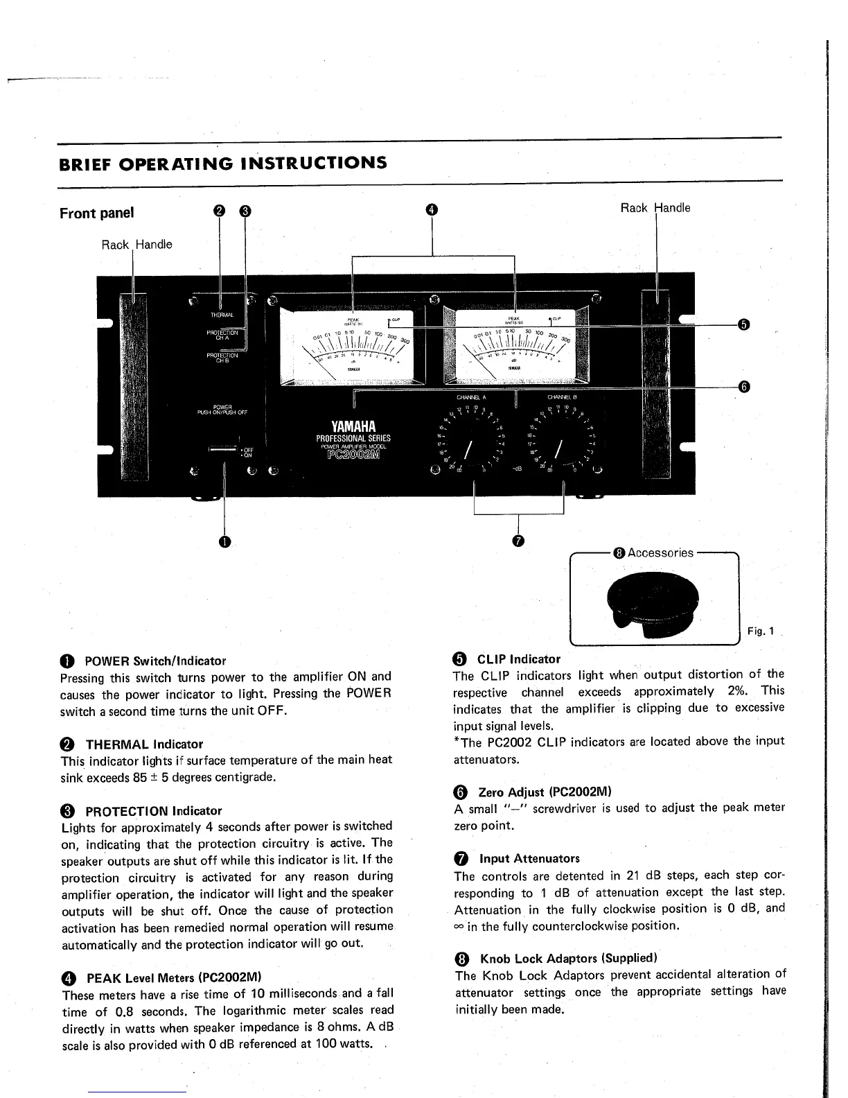 Yamaha PC2002 - Front Panel Overview; Front Panel Controls and Indicators