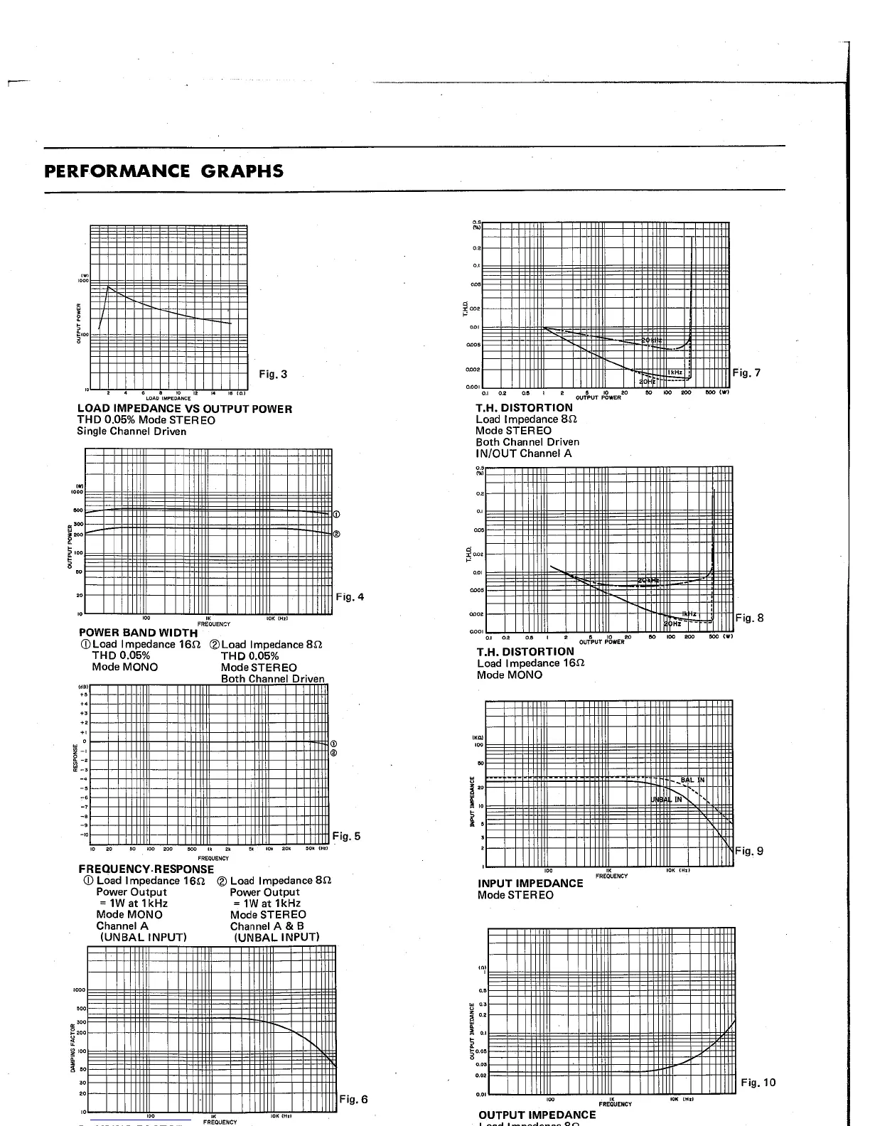 Yamaha PC2002 - Performance Graphs; Load Impedance vs. Output Power; Power Band Width Graph; Frequency Response Graphs