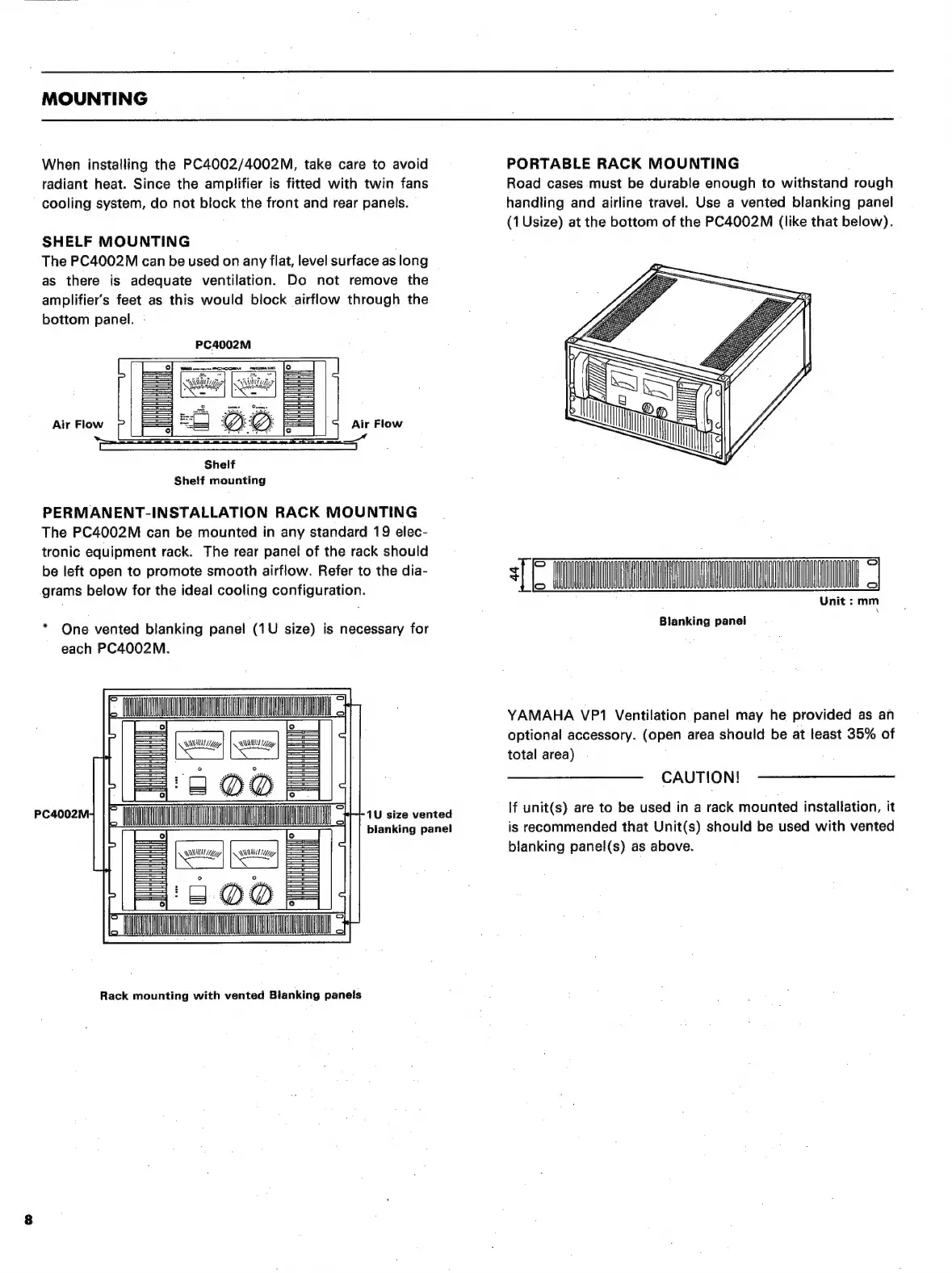 Yamaha PC4002 - Mounting; Shelf Mounting; Portable Rack Mounting; Permanent-Installation Rack Mounting