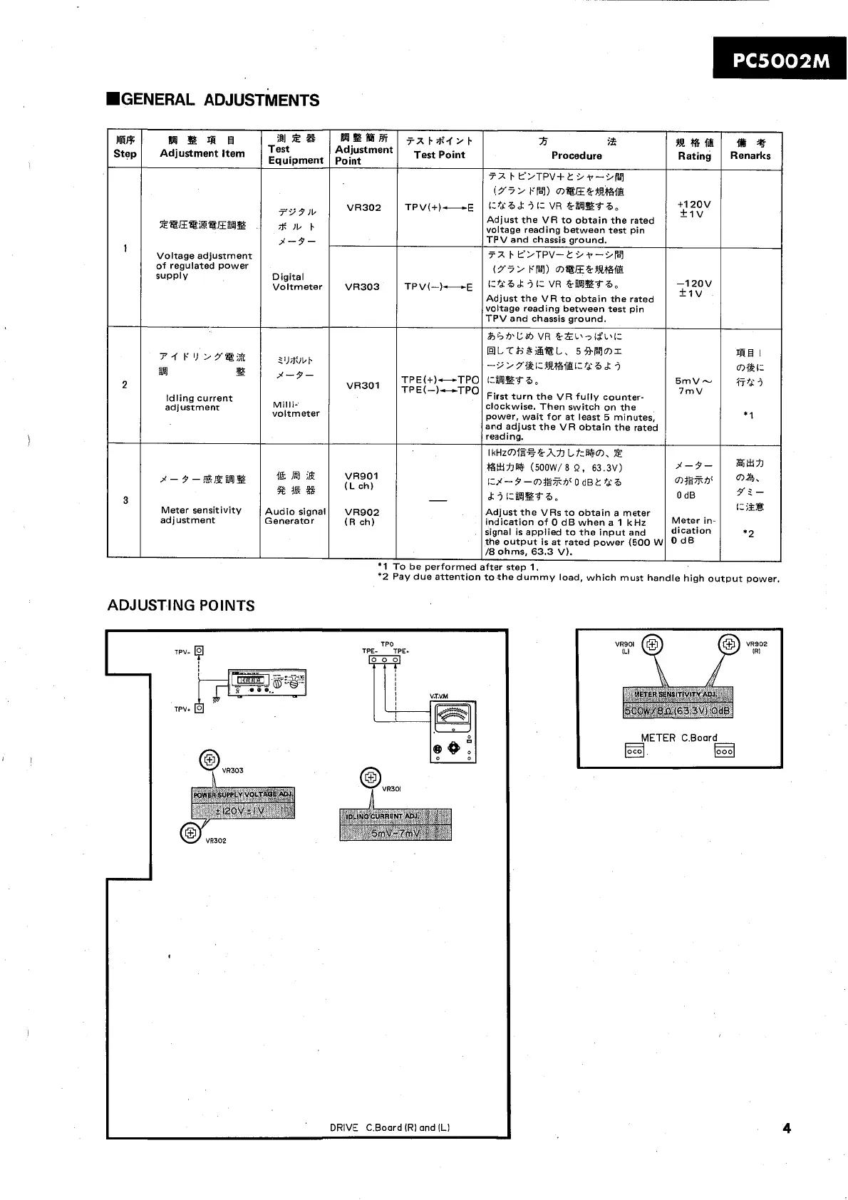 Adjust the VRs to obtain a meter