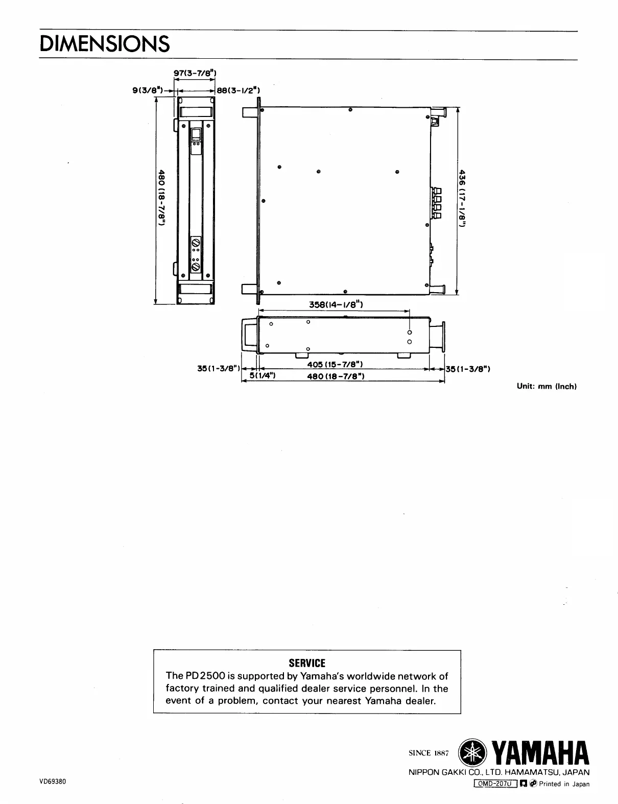 Yamaha PD2500 - Dimensions