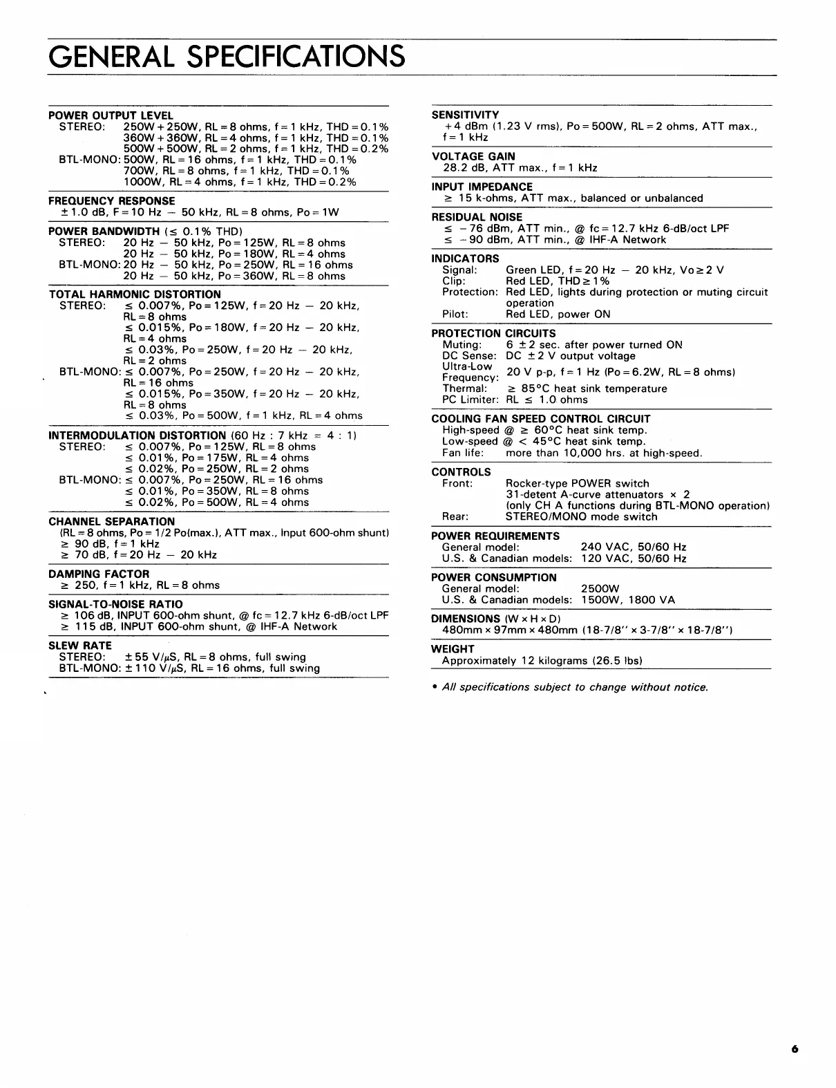 Yamaha PD2500 - General Specifications