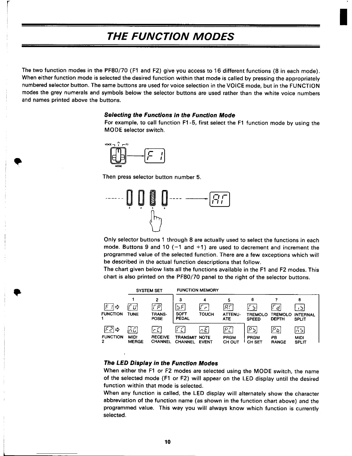 Yamaha PF80 - Selecting the Functions in the Function Mode; The LED Display in the Function Modes