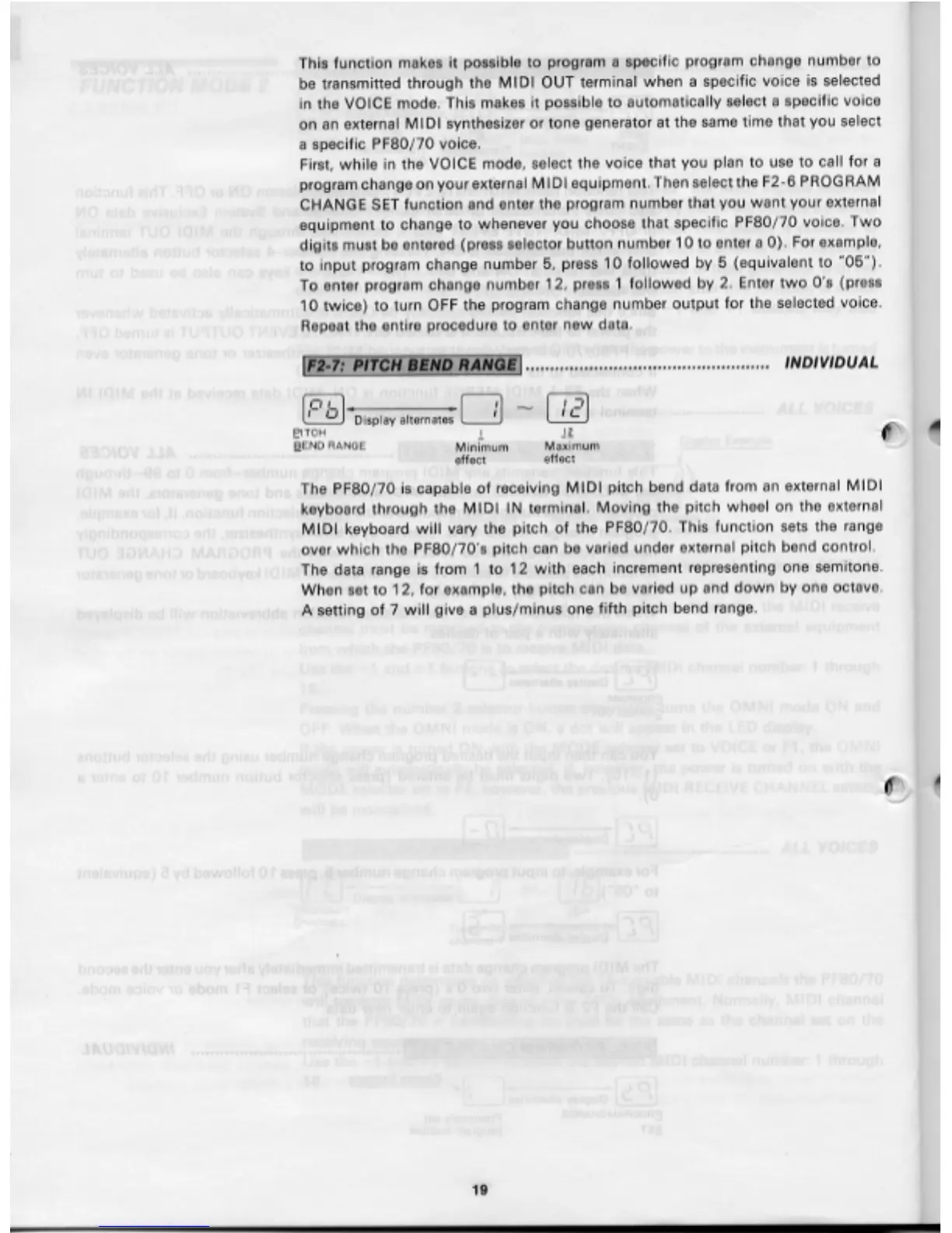 Yamaha PF80 - F2-7: Pitch Bend Range
