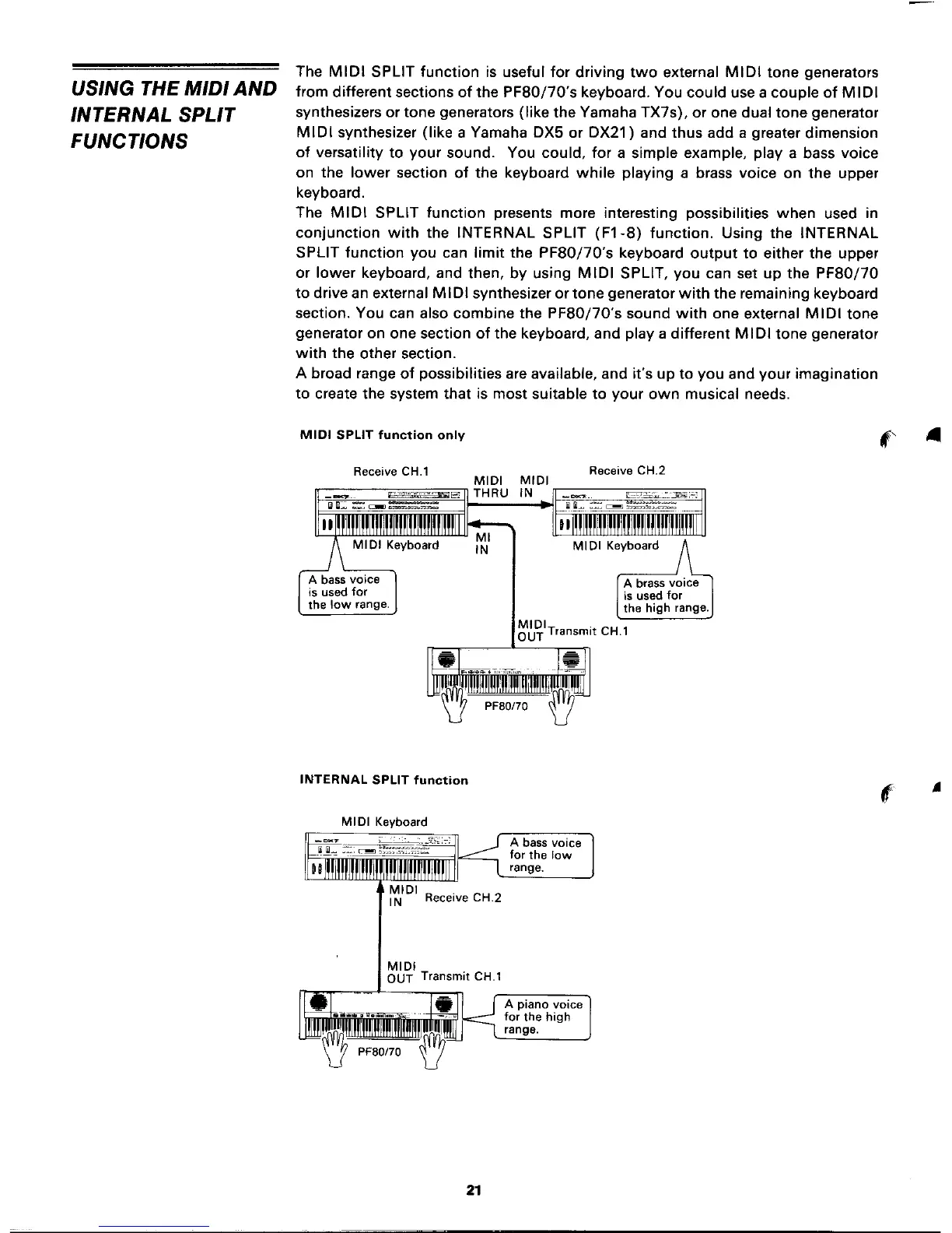 Yamaha PF80 - Using the MIDI and Internal Split Functions